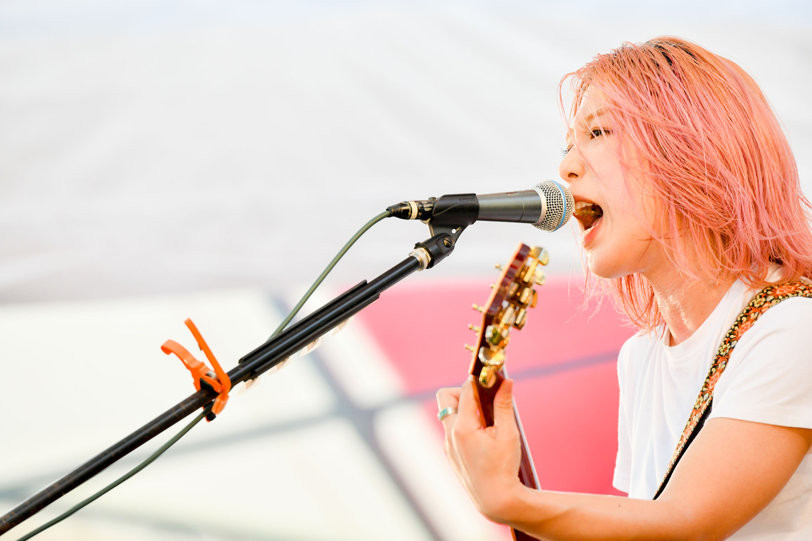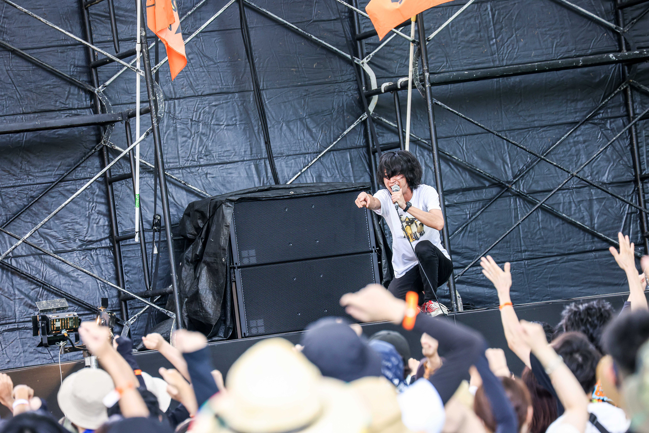 やれる限りの事を一生懸命やりきった上で、遂に8月20日(土)に初日を迎えることができた。朝9時55分、オープニングアクトは大阪出身のハンブレッダーズ。「フェスをやるのがどれくらい大変か、この3年でわかったと思います。僕たちもなんとか一歩ずつやってます」とMCで話すボーカルのムツムロアキラからは、朝早くから全力の熱情が伝わってくる。20分という短い時間でもやりきる姿は、同じ関西人として凄く嬉しかった。