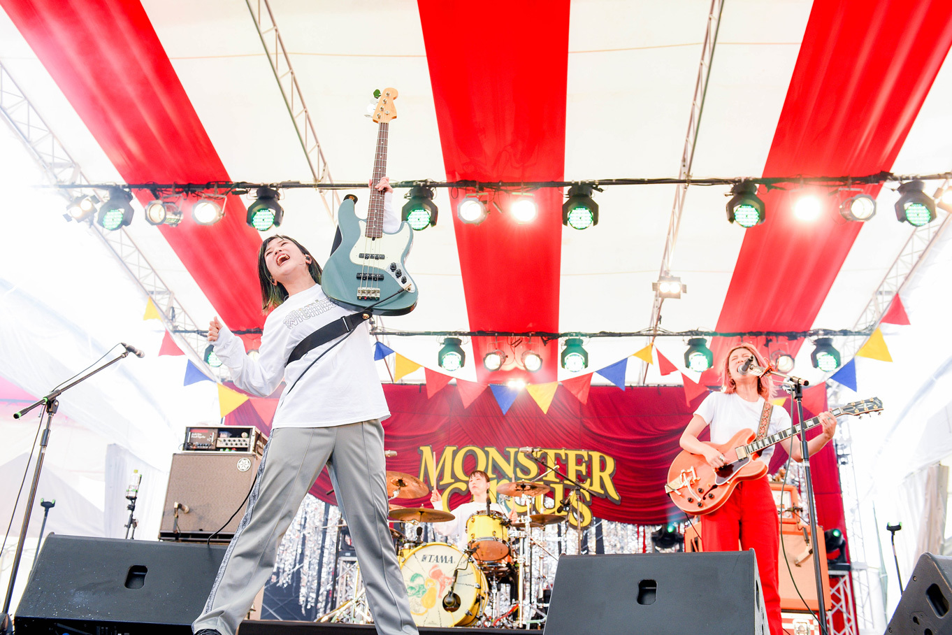 その裏のMONSTERcircusでは、Hump Backのステージ。林萌々子、1曲目に入る前にMC。まだ3人だけでツアーを回っていた2017年、自分たちのことを信じられる時も信じられなくなる時もあったその頃に、初めて声をかけてくれたフェスが『MONSTER baSH』だった。本当にあの時から、自分たちにとっていろんなことが始まった。そんな特別なフェスだから、中止が悔しかったーーと、モンバスへの愛と感謝を言葉にしてから、「その頃の曲を。この曲から始まった!」と、「月まで」でライブをスタートする。ラストは「どいてくれ、うちらの通る道や!」と叫んだ「番狂わせ」で締めたが、まだ持ち時間が残っており、急遽「僕らの時代」を追加した。