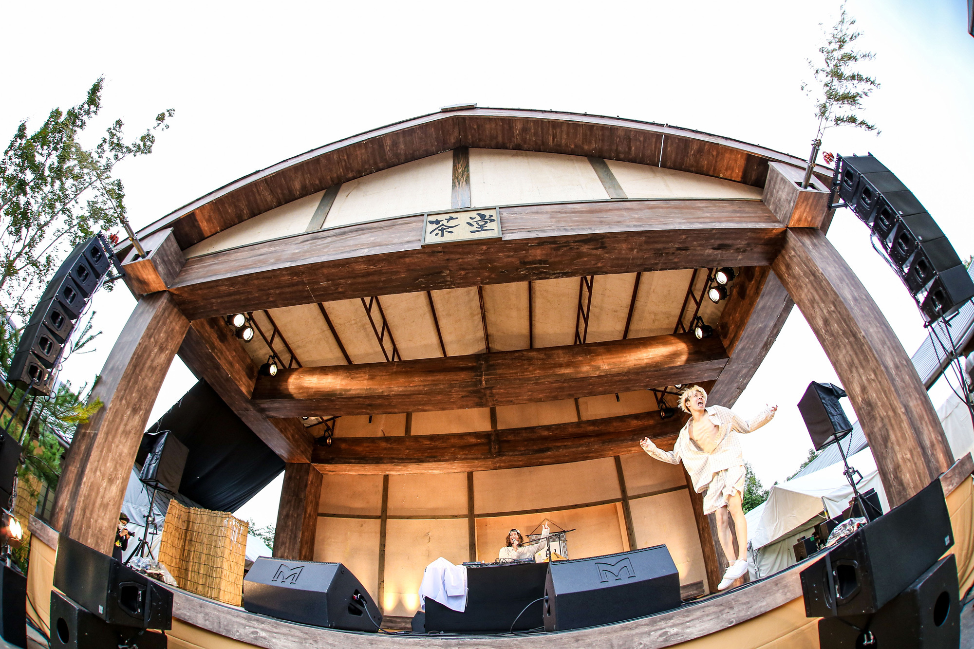 再度、私に戻ってきましたが、STAGE茶堂にも触れたい。お遍路さんが道中の疲れを癒す為に憩いの場として設けられた「茶堂」をコンセプトに、10年前に『モンバス』のためにわざわざ設営された。昔から公園に存在していた様な立派で雰囲気のある建物は、個人的にも大好きな場所で、ゆっくり落ち着けるコンパクトなステージ。最初に登場したのはドラムの山口美代子とふたりで挑んだRei。ふたりというミニマム編成ながらも完全なバンドサウンドで、観ている我々を圧倒する迫力。バイリンガルな彼女が流暢な英語で「Stand Up!」と訴えかけた瞬間、観客がノリながら座席から立ち上がった場面はたまらなく痺れた。