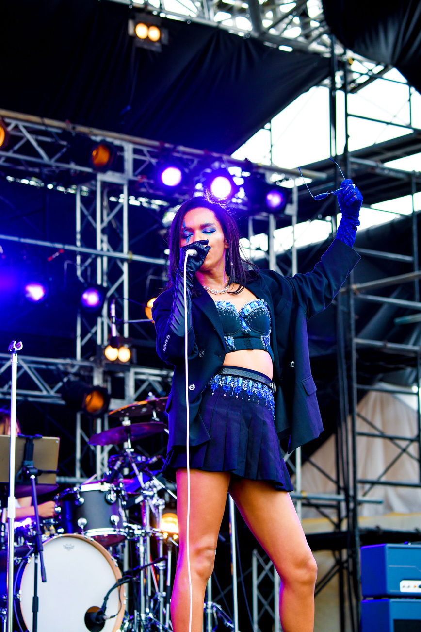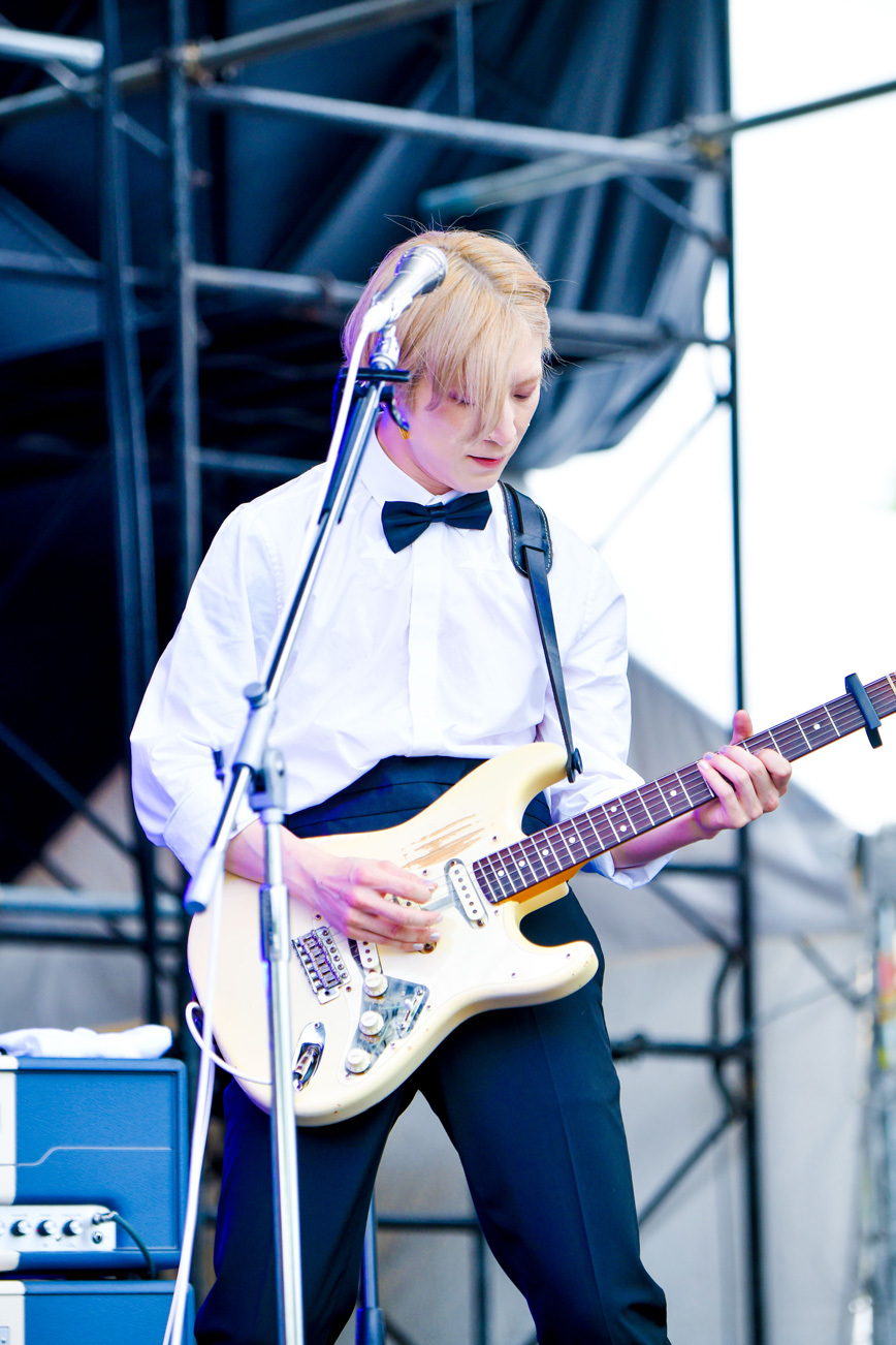 全員モノトーンの衣装で登場。アヴちゃん、1曲目「KING BITCH」の途中でサングラスを外す(その目の周りは青く染められている)、4曲目の「催眠術」をちょっと歌ったところでジャケットを脱ぎ捨てる、といった一挙手一投足が、画になりすぎ。一瞬たりとも目と耳を離せないパフォーマンス。オーディエンス、「魅了されている」というよりも「呑まれている」空気感だった。