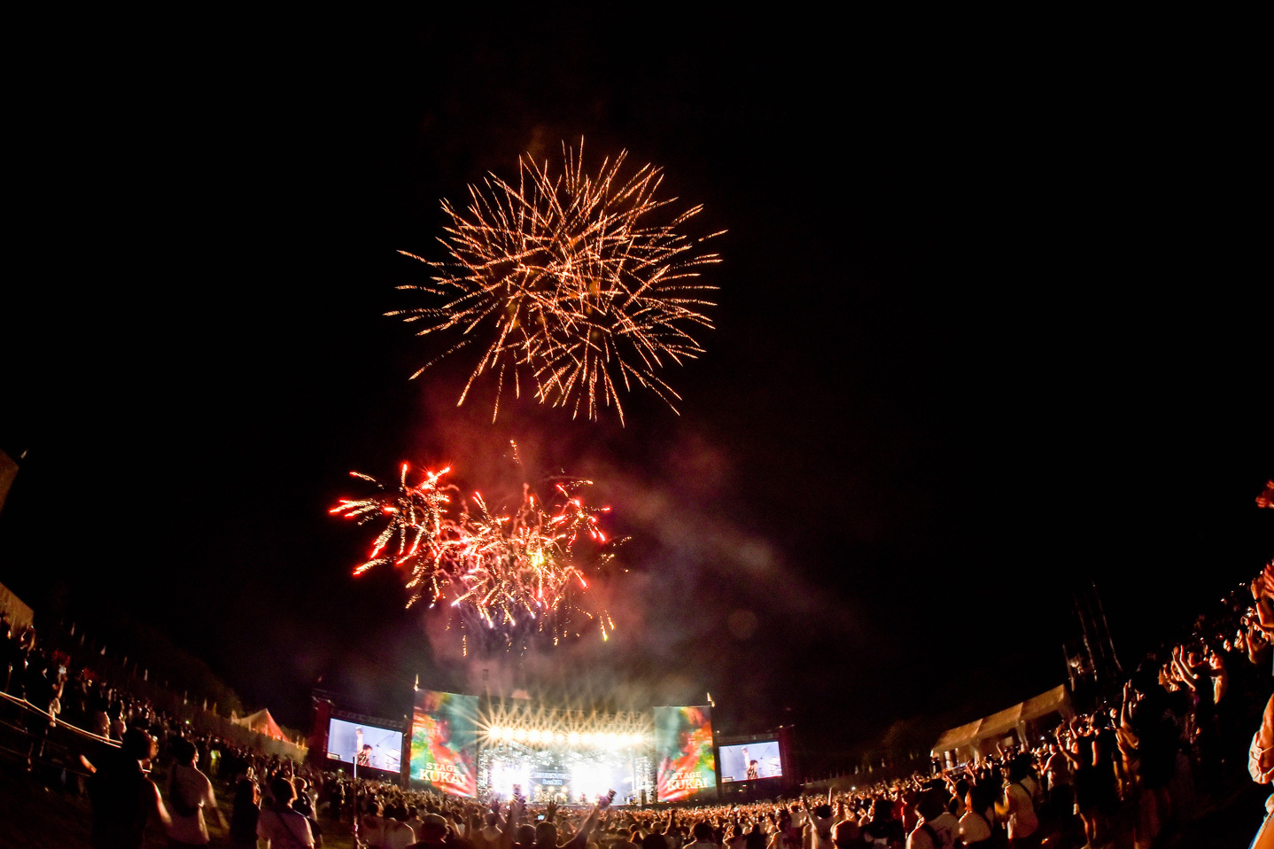 WANIMAが終わり、スクリーン横のビジョンにはコラボが実現したキッカケとなったキヨサクとKENTAのラジオ対談、レコーディング、MV撮影といった模様が映し出された。コラボ楽曲「愛彌々」ではKENTAがスマホの光を照らすと、観客もスマホの光を照らし出し、それはそれは美しき夜の光景だった……。そして、MONGOL800のホーン隊であるNARIとシーサー、MONGOL800のパーティーダンサーを務める粒マスタード安次嶺も共に、MONGOL800「DON'T WORRY BE HAPPY」も披露。ラストナンバーはWANIMA「ともに」で締められる。最後はステージ後方から打ち上げ花火が何度も何度も打ちあがり、3年ぶりの初日は多幸感溢れる素晴らしきスタートを飾った。