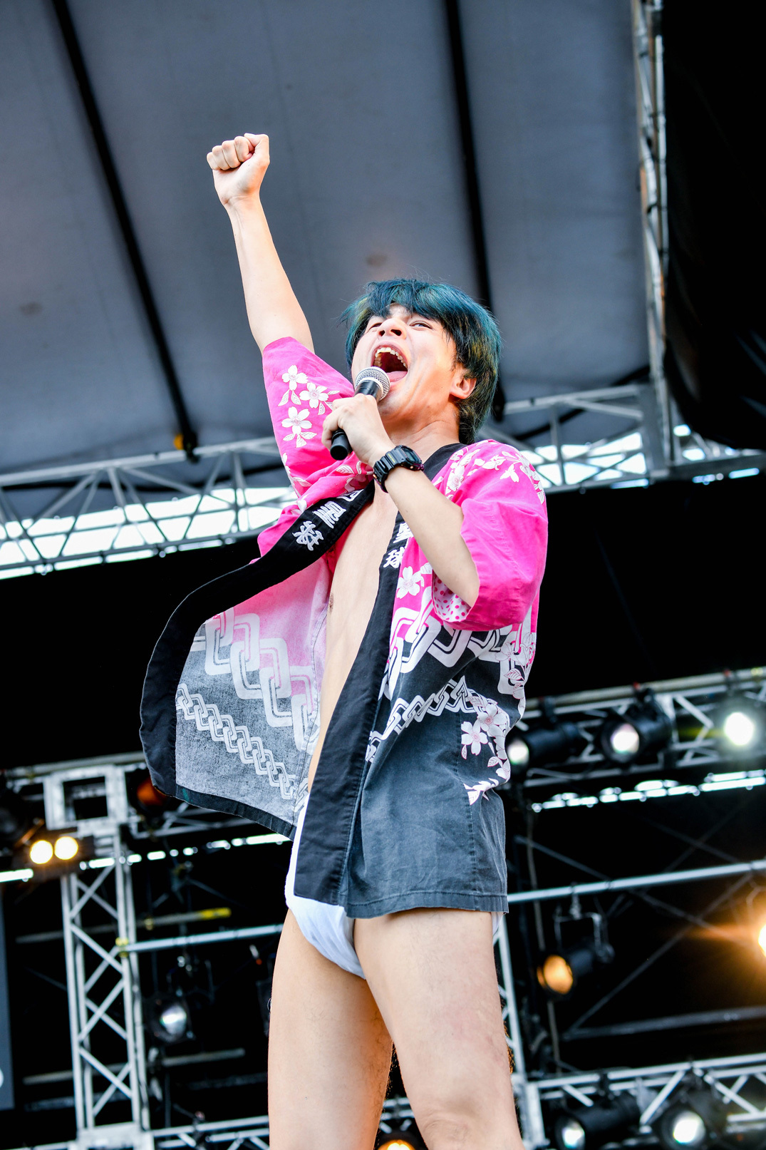 などなど、ステージの上も下も含めて、午前中の段階でもうすっかり、『モンバス』ならではの祝祭感ができあがっている……いや、「戻って来ている」と言った方が、より正確かもしれない。という中、その空気を一瞬で変える存在が、STAGE龍神の三番手で登場した。