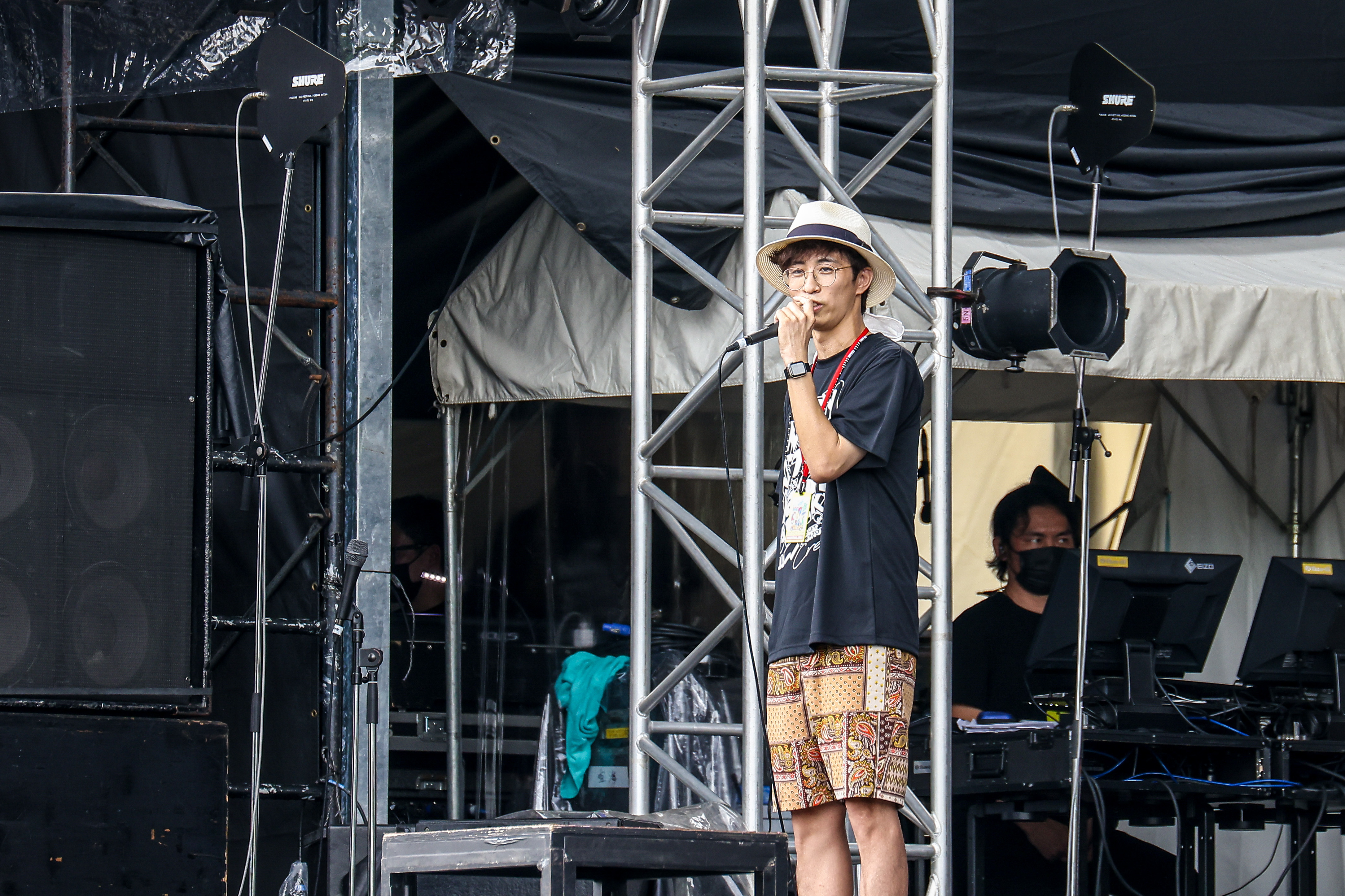 STAGE龍神のトップバッター四星球が登場する前には、『モンバス』プロデューサーの定家崇嗣氏が開会挨拶を行なった。コロナ禍でも、約5000人が入る徳島県・アスティとくしまで80人限定ライブを開催したりと、ルールを厳守しながらもライブを止めなかった四星球。
