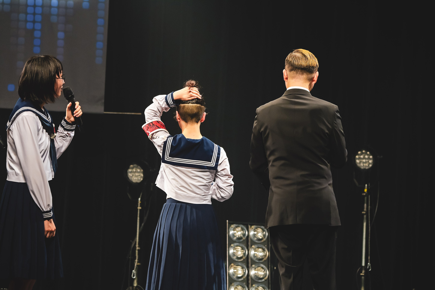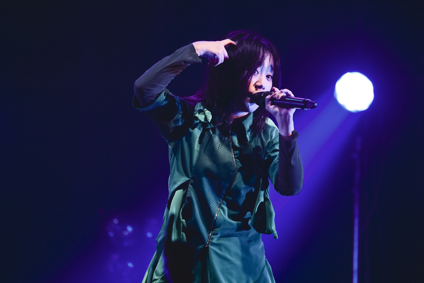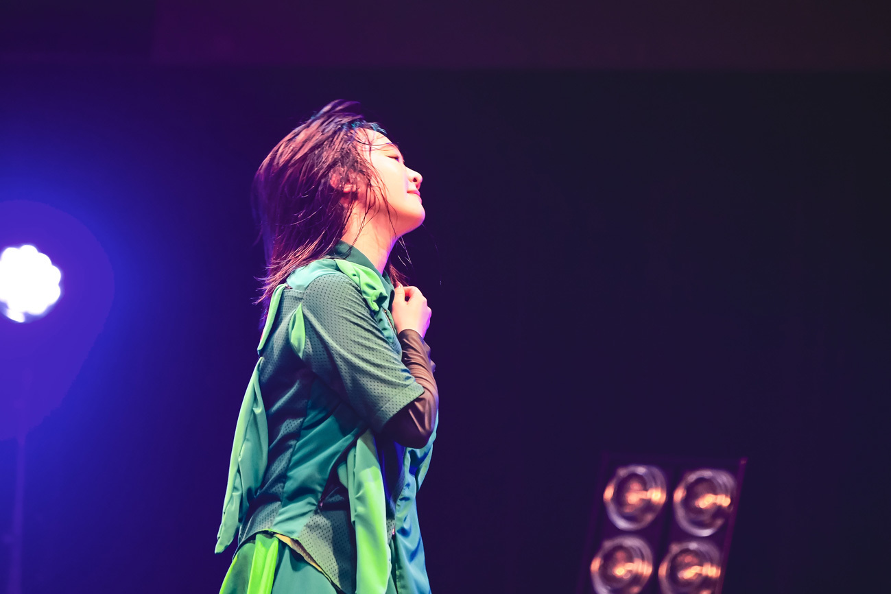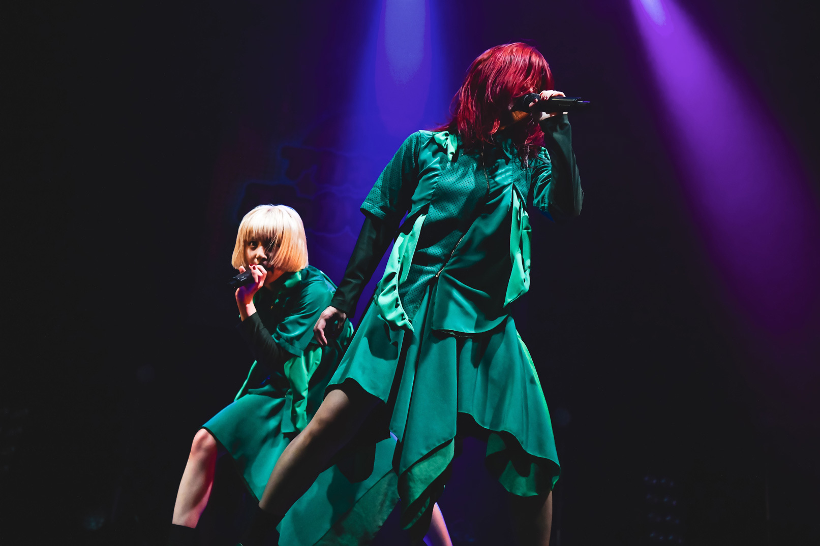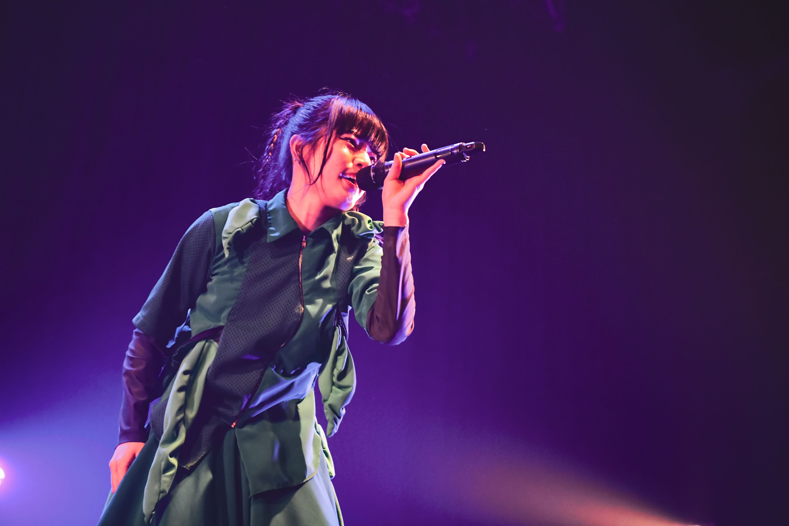 1曲目「最終人類」でも、SUZUKAが肩車から3人に倒れこむようになるなど、アクロバティックな動きをみせて観客を沸かせた。さらに「先生、告白したら犯罪ですか」の語りかけから始まる「恋ゲバ」、手首を曲げて膝を外向きにして折り曲げながら前後に動く特徴的なダンスがクセになる「オトナブルー」などで、会場を一気に新しい学校のリーダーズの世界観で染めあげた。MCではMIZYUから「なんてったってSUZUKAは?」と振られ、SUZUKAは「大阪出身やで、おま! 大きい声で言わせてください。たー、だい、ま!」とリズムにのって地元凱旋を報告。