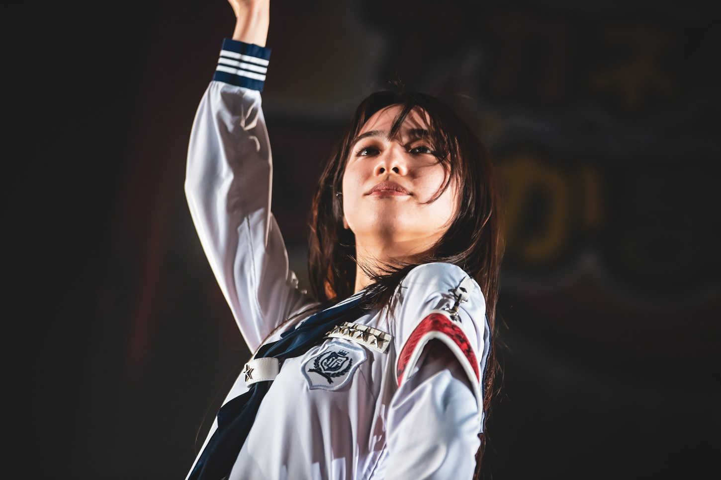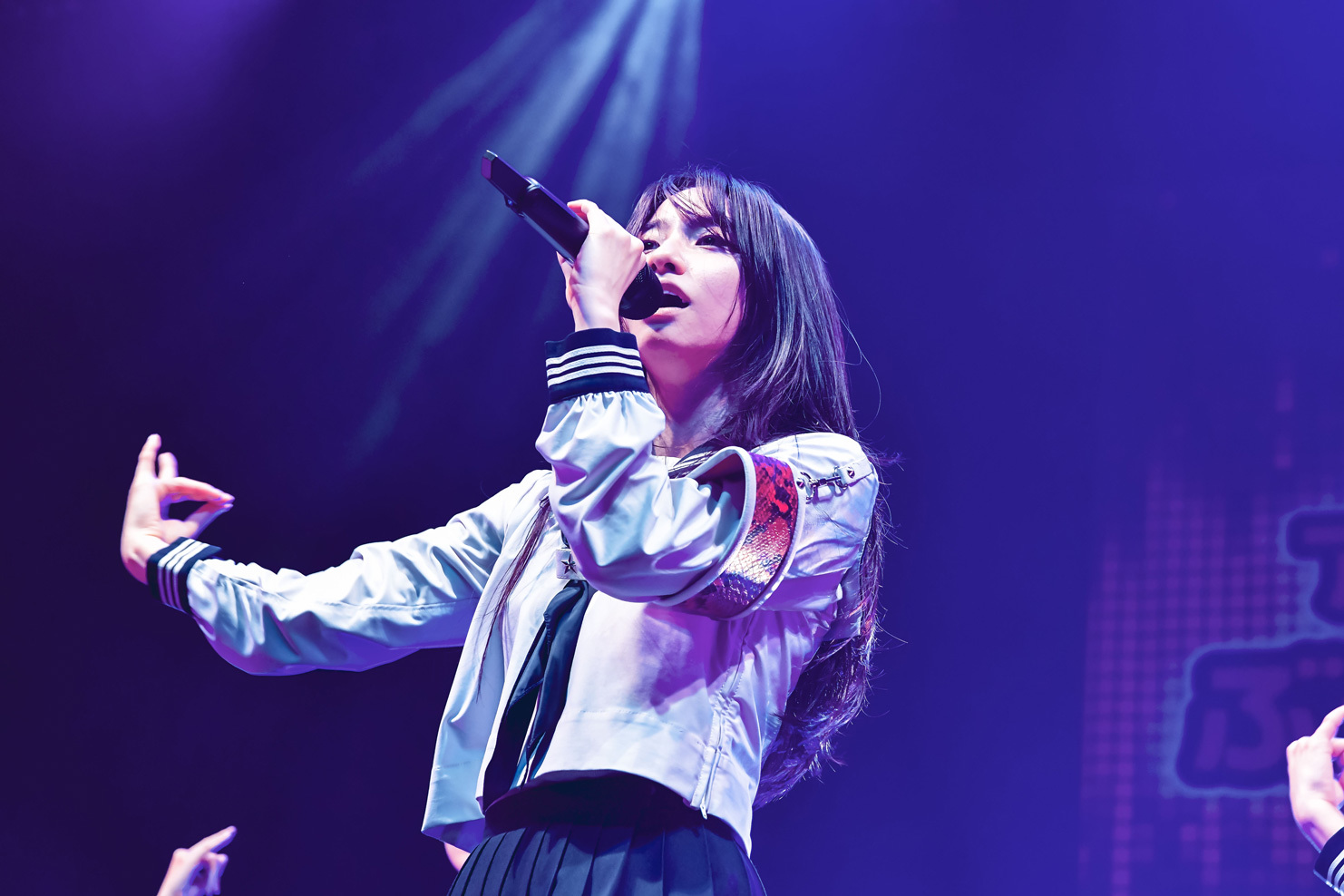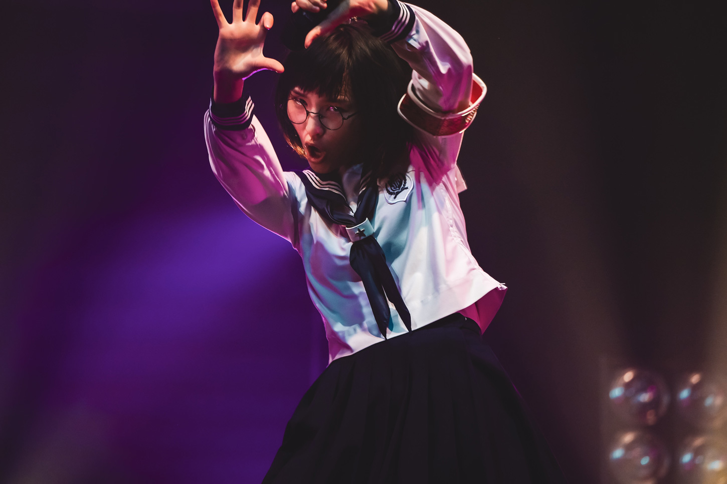 その後も、MIZYUによる頭頂を土台とした逆立ちやメンバー同士が殴り合っているように見える振付などがある「Pineapple Kryptonight Spesial Mix(original〜Remix)」ほか、中毒性たっぷりのサウンドとメンバー考案のダンスが展開。途中、学ラン姿に衣装チェンジし、SUZUKAは「かっこいいだろう? ワイルドだろう?」と人気芸人のフレーズを口にして笑わせる、お茶目な一面も。