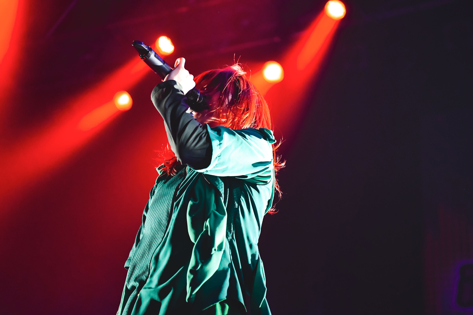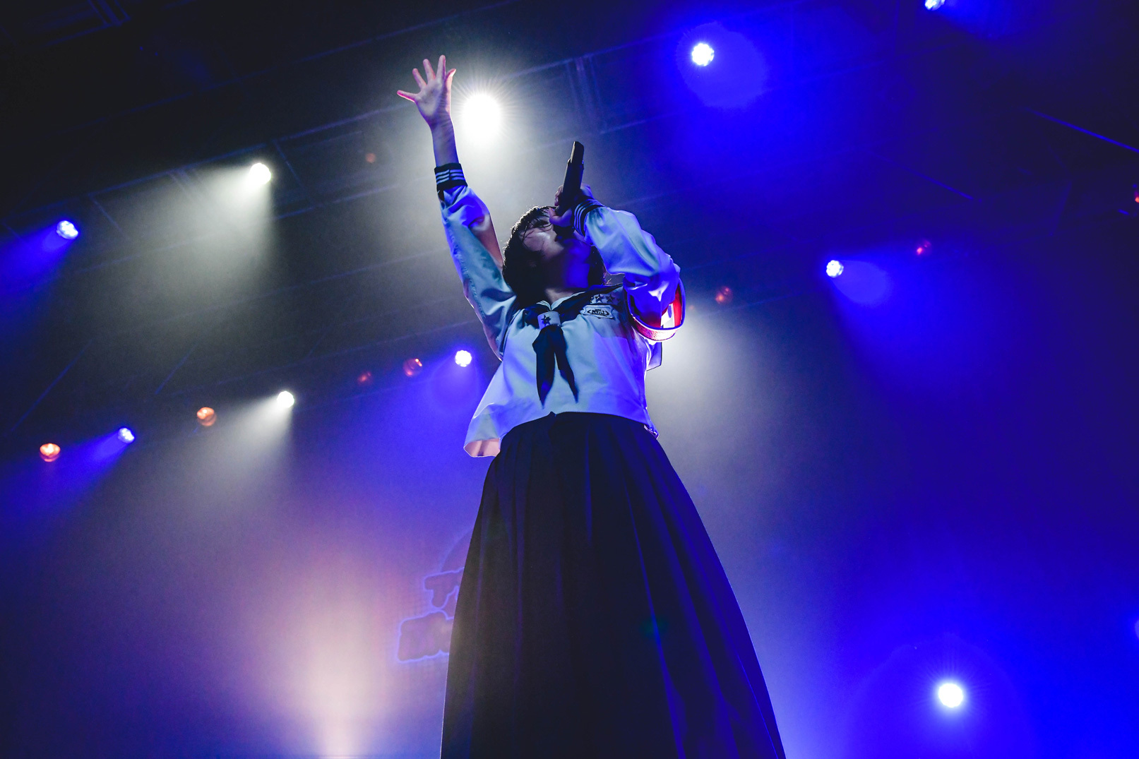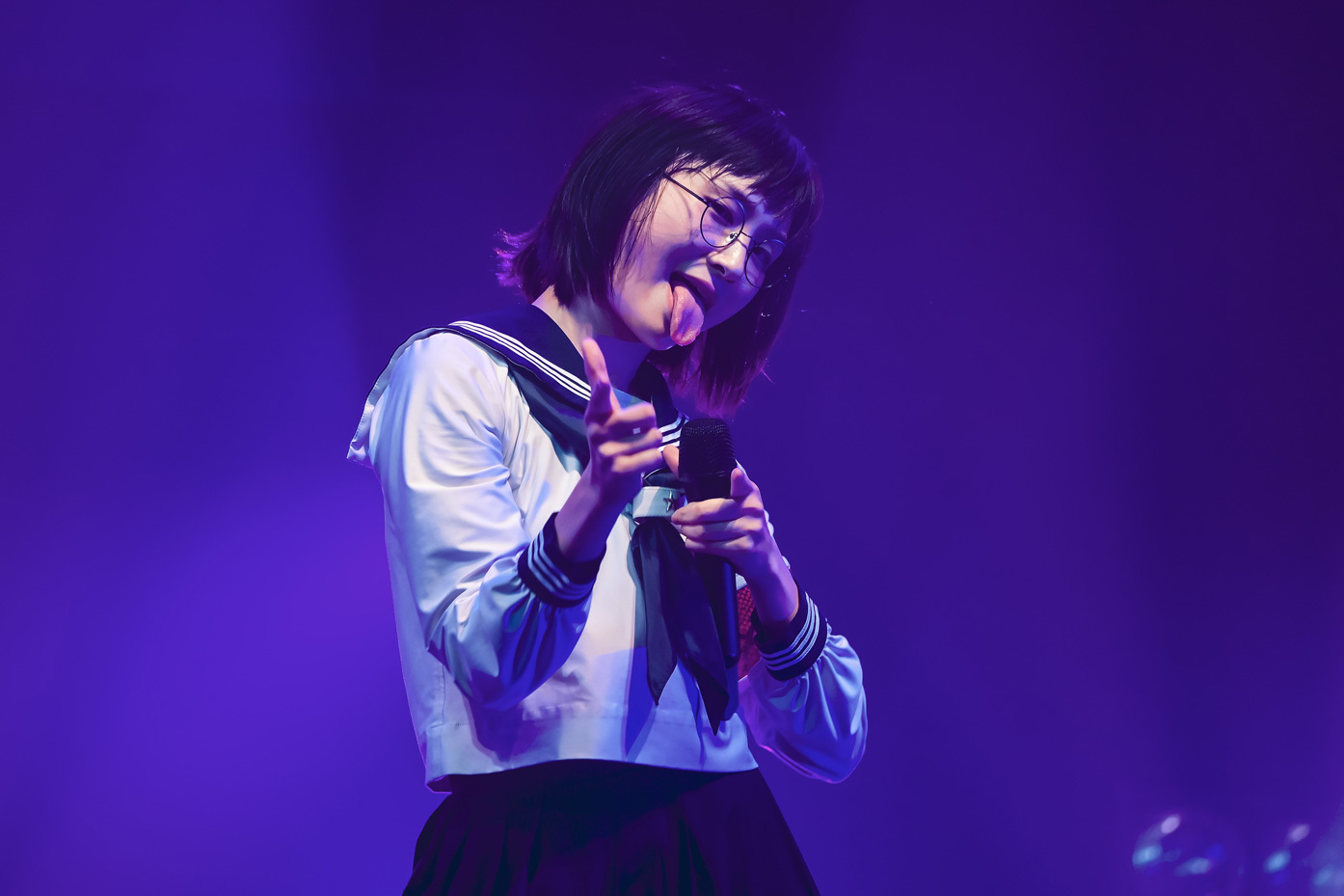 1曲目「STUPiD」からステージの最前線に立って観客を煽り、2曲目「teacher teacher teacher」ではファンも一体となって膝蹴り風の振付をするなど、熱量たっぷり。MCでは、イトー・ムセンシティ部が「さっきまでの(アバンギャルディ、新しい学校のリーダーズの)熱気がずっと残っていて、すごい温めてもらったから1曲目から汗がダランダラン」と2組のライブに押され、フルスロットルになっていると話した。
