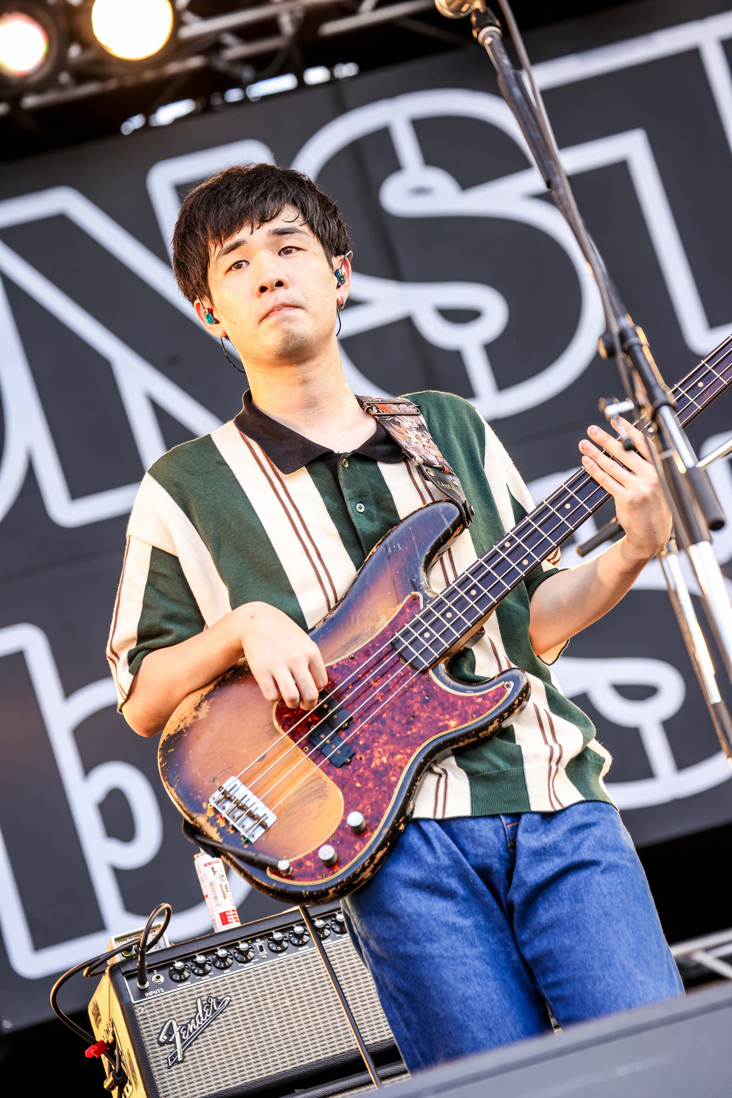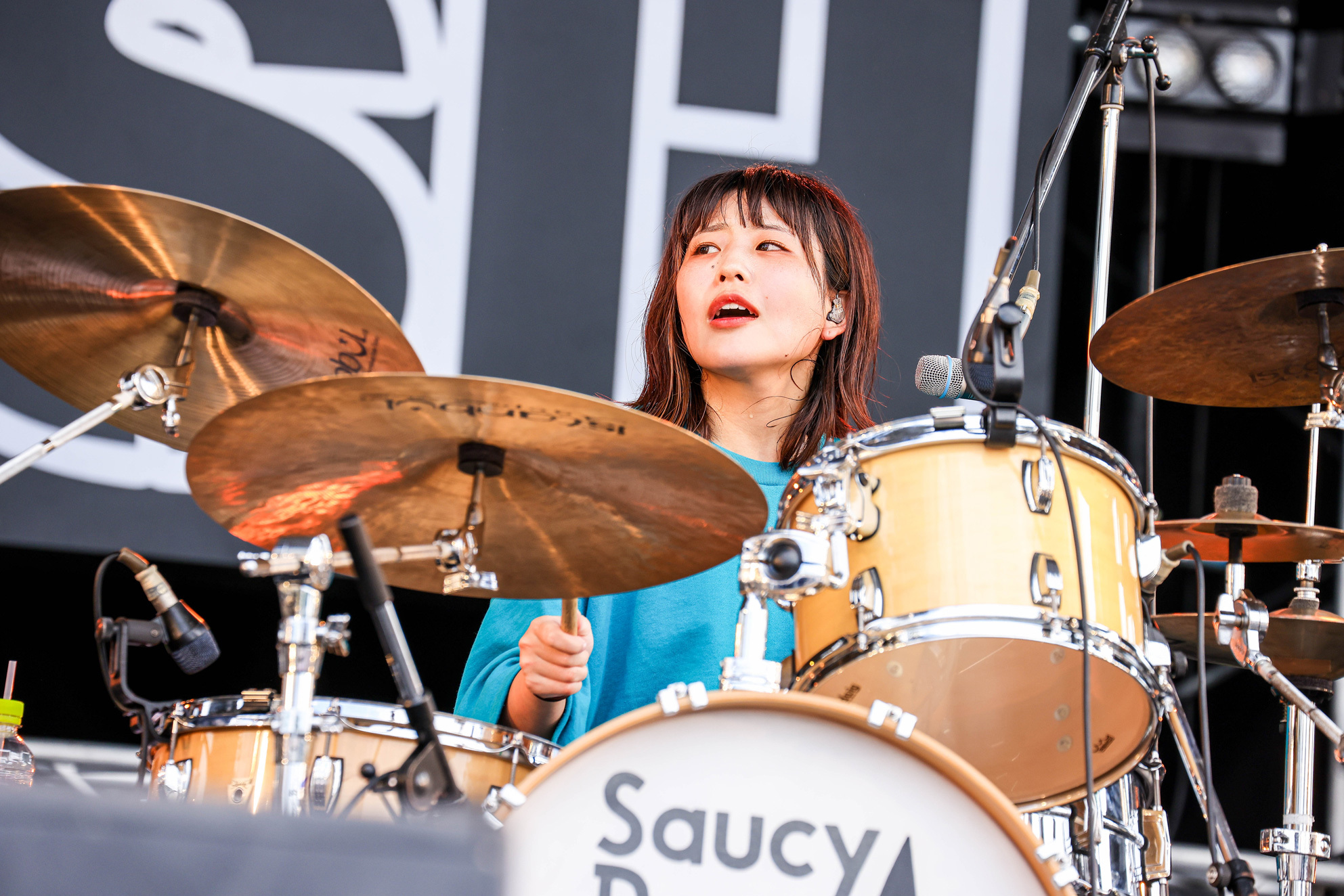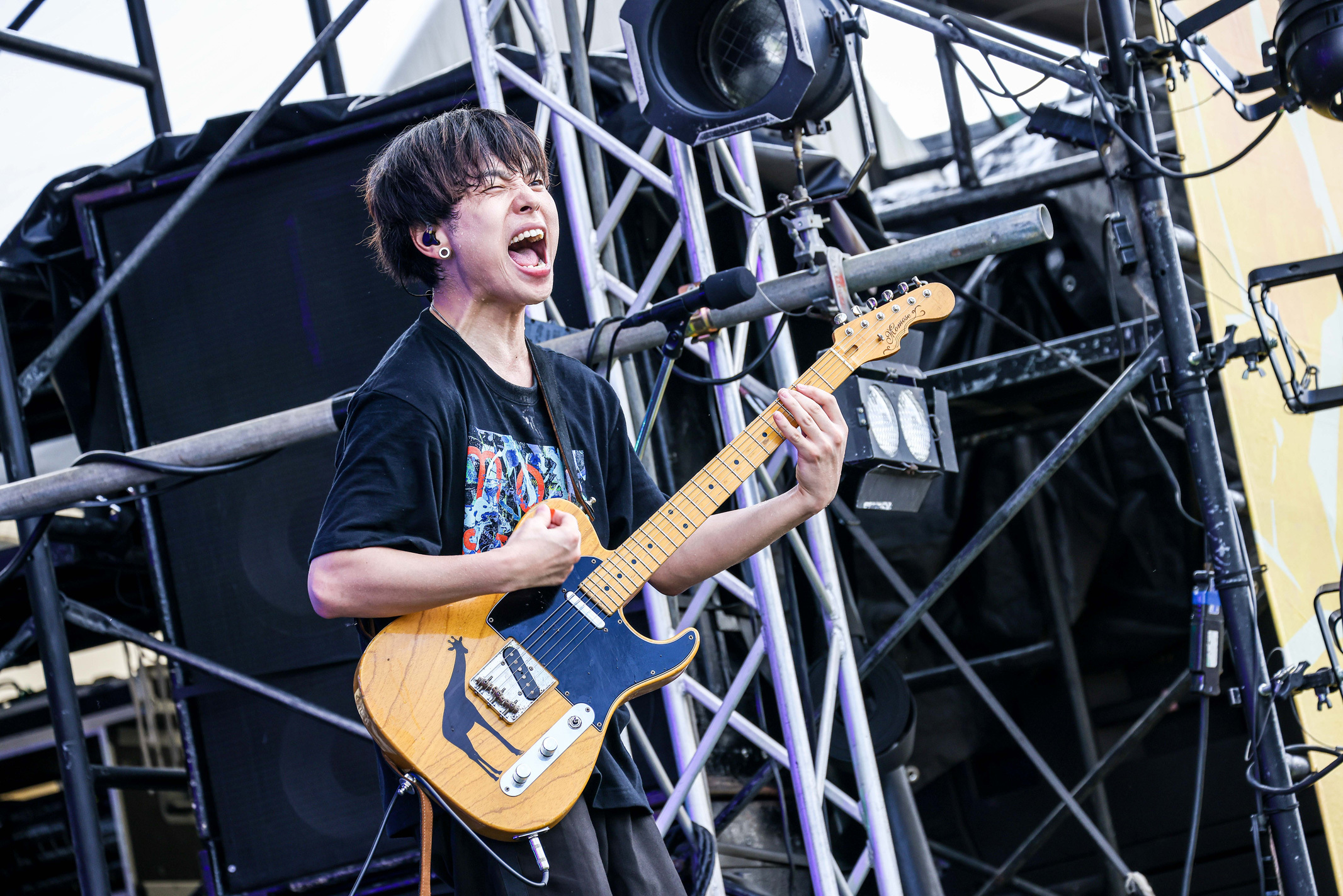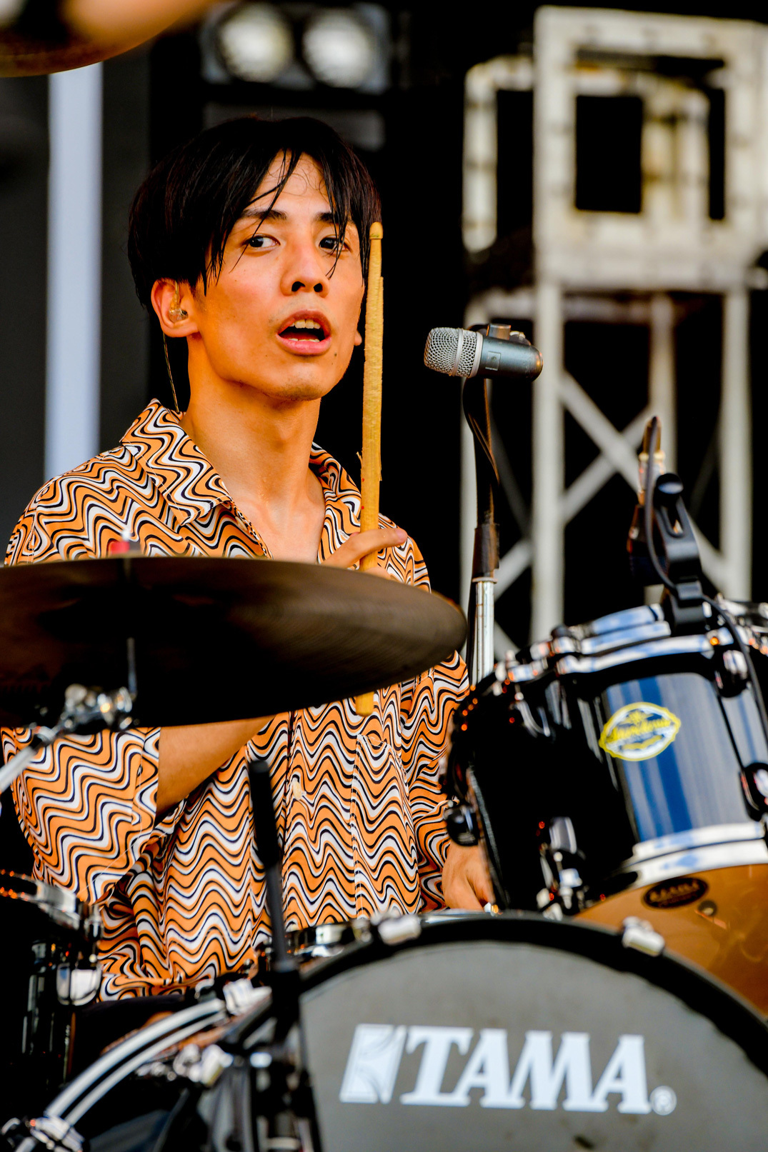 そして、STAGE龍神つづきで言うと、Saucy Dog、Vaundy、マカロニえんぴつという今をときめく大人気な3組が連続で登場する時間帯は、この日の見どころのひとつであったはずだ。後方から全体をグルっと見渡した時に、コロナ禍の前の動員を完全に取り戻せたのではと思えるくらいにみっちりパンパンだった。サウシーの1曲目「シンデレラボーイ」の終盤で、演奏しながらもボーカルの石原慎也が「大丈夫?」と観客を気遣う。曲終わりも再び観客を気遣ったが、どれだけ多くの動員を記録しても、観客が元気で安全にライブを観られることが一番であり、その状況を演奏中でも冷静に見られている石原は頼もしかった。