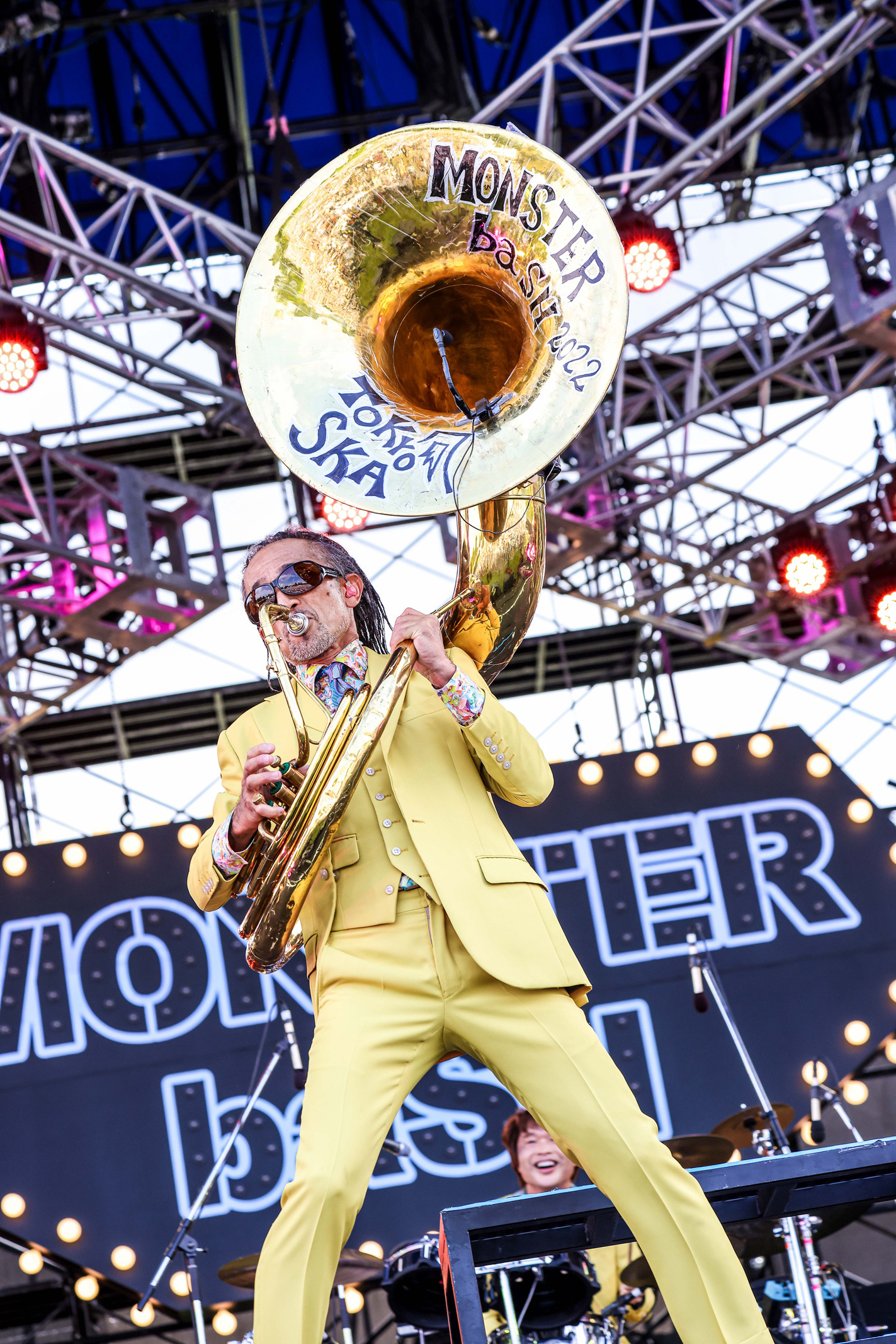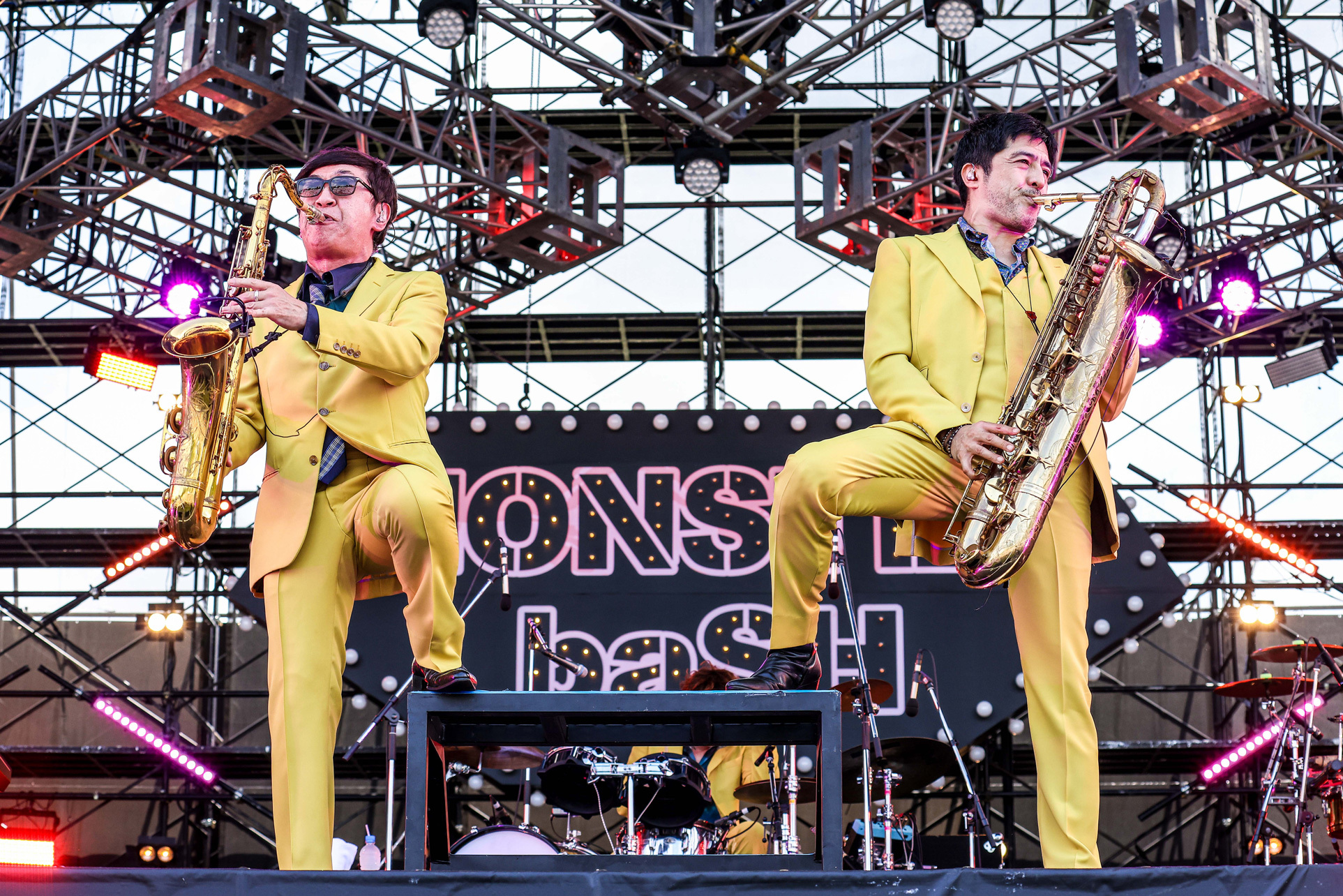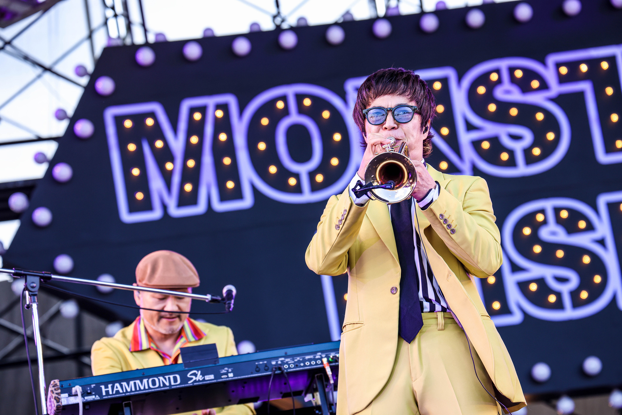そのBiSHは、東京スカパラダイスオーケストラのステージにも登場、「カナリヤ鳴く空」を披露した。2019年、つまり前回のMONSTERcircusで実現したコラボレーションの再現である。BiSHが去った後は、沖祐市のピアノ・ソロ→「水琴窟」を経て、ラストはキラーチューン中のキラーチューン「Paradise has No Border」。谷中敦が最初に叫んだ「曖昧な悲しみは、すべて喜びで塗りつぶせ! 戦うように楽しんでくれよ!」という言葉どおりのステージである。