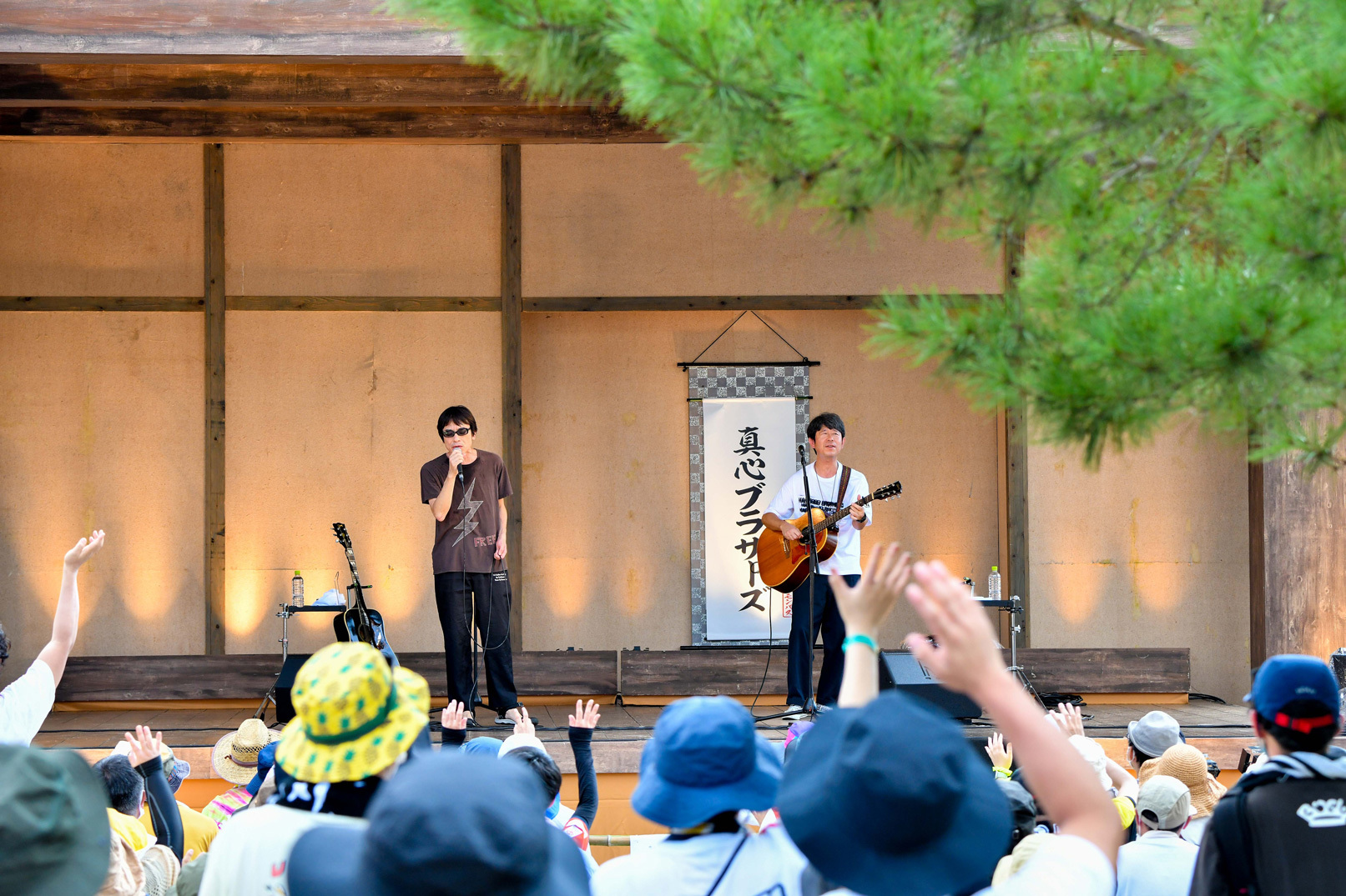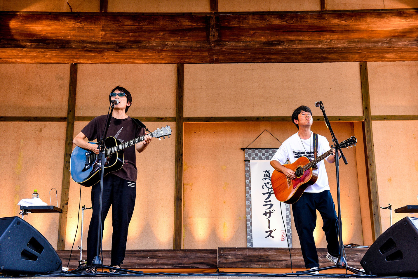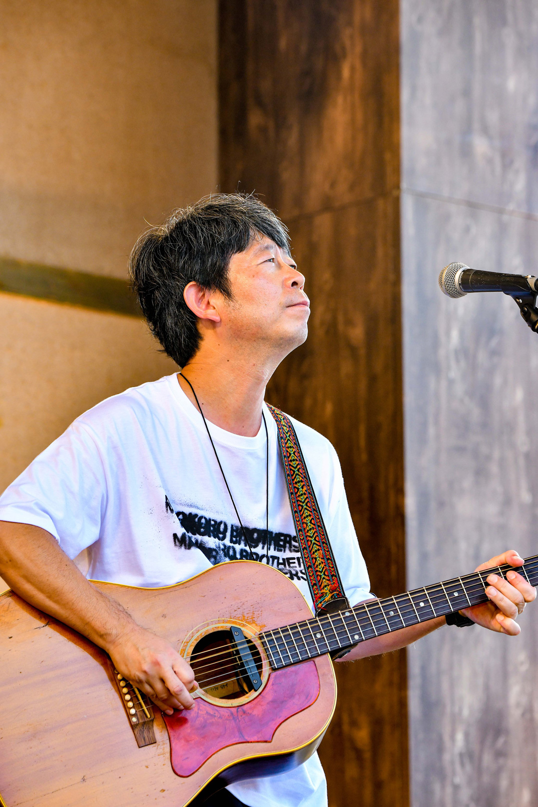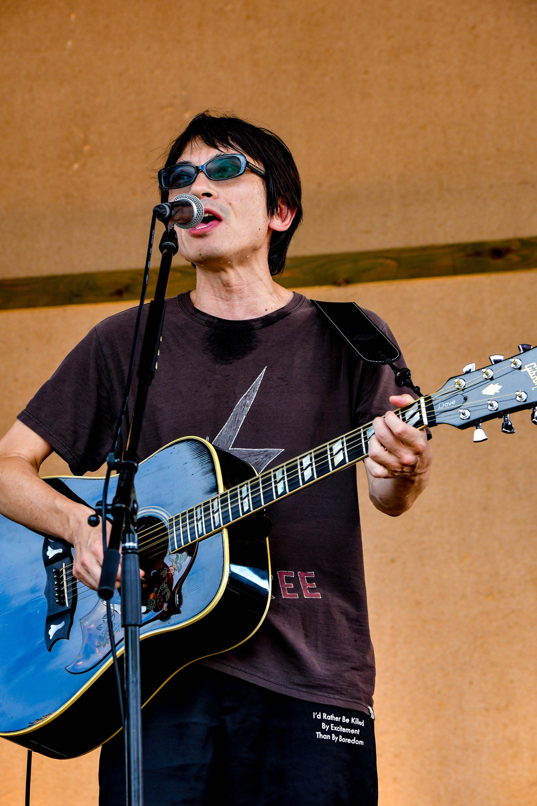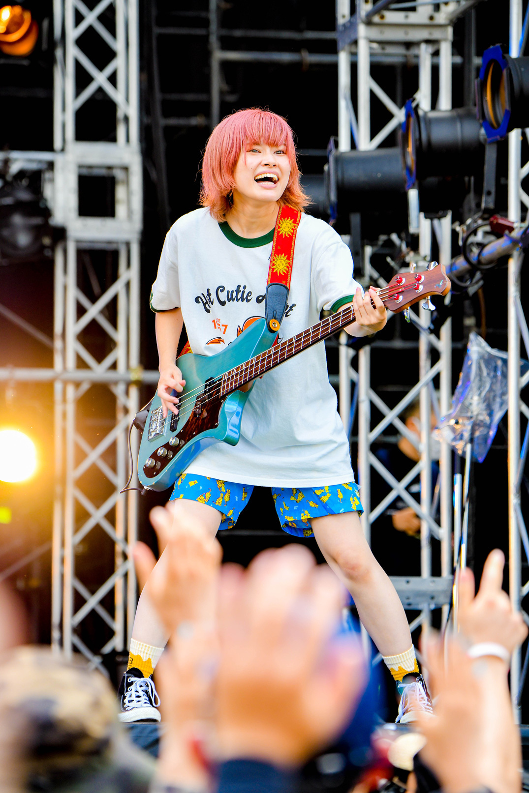 ロックやパンクは決して音楽ジャンルだけでなく、生き様でもあるわけだが、それは激しいステージングで無くても、緩やかなアコースティックライブからも同じく感じられる。この日、一番激暑だった15時前後に、STAGE茶堂に現れたのはベテランの真心ブラザーズ。コンパクトな場所だが、後ろまで人がいっぱいで満員、『モンバス』は老若男女問わずさまざまな世代の観客が来て、さまざまな音楽を聴くことができるフェスなんだと改めて再認識できた。そんな中でも、平和や暴力についてリアルに歌われる「人間はもう終わりだ!」は、21年前の楽曲ながら、今の時代にも響きまくる……。激しくアコギがかき鳴らされる中、だらだらと汗をかきながら真剣に聴き惚れた。そこには明るく楽しく騒ぐだけでは無くて、心地よい独特の緊張感もあったフェス黎明期の空気が漂っていた。でも、当の本人たちはいつも通り飄々としていて、冗談も飛ばしまくり、そんなギャップもたまらない。ラストナンバーは、27年前ながら全く色褪せない「サマーヌード」。真夏の夜の海を歌ったこの曲を聴きながら、次は真夏の夜の野外で聴きたいとも思った。