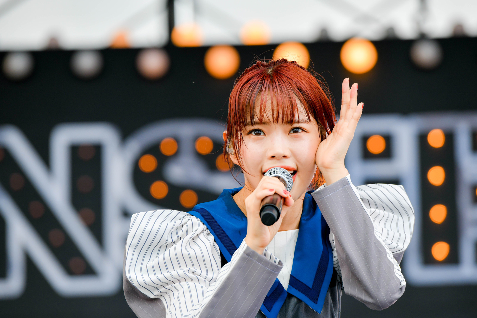 朝イチから「場をあっためる」のではなく「最高温度まで上げる」くらいのあっついパフォーマンスを見せたSPARK!!SOUND!!SHOW!!。本番中にイトー・ムセンシティ部が熱中症で倒れてしまったのに、曲を止めずにそのままやり通し、彼女がスタッフに救護された後の曲も3人で歌いきったBiS。と、すさまじい熱量だった2組のオープニング・アクトを経て、トップバッターsumikaの前に、『モンバス』プロデューサーのDUKE 定家氏が、本日も挨拶。一昨年と昨年、開催できなかったことを詫び、ついさっきまで降っていた雨で準備が遅れたため、15分押しのタイムテーブルで進行することと、今日はチケットが発売とほぼ同時に完売したことを、参加者たちに伝える。
