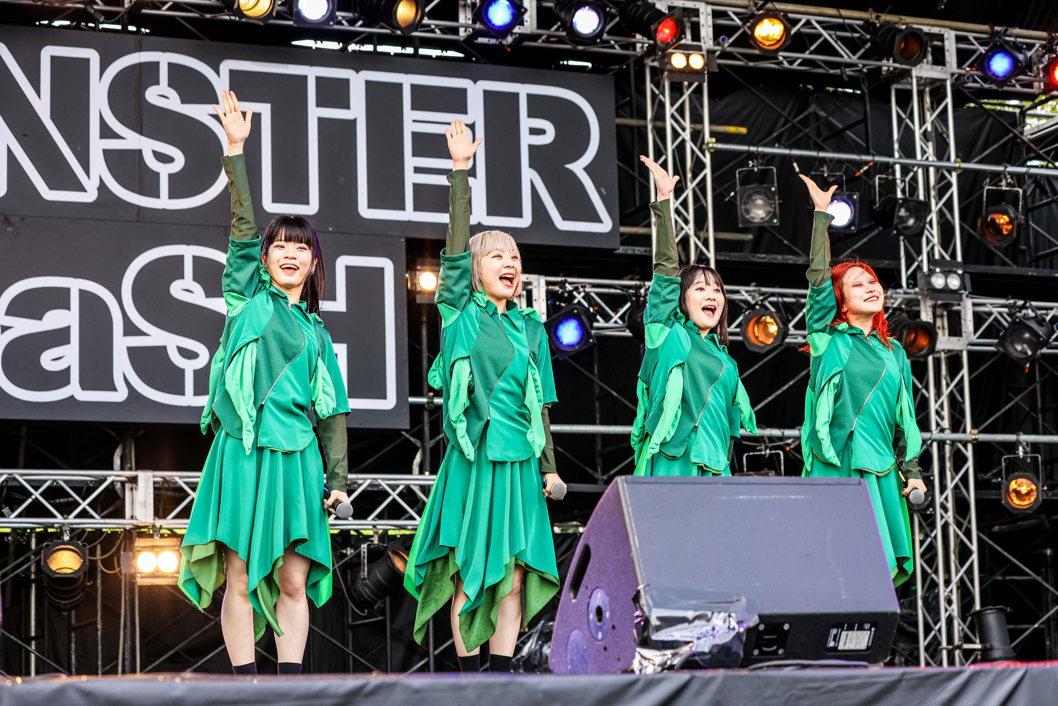 BiSHが初めて出たフェスが『MONSTER baSH』だったこと、最初は2017年で、今回ついに最も大きなステージに出られたことを、アイナ・ジ・エンドが言葉にする。過去の出演時、参加者が帰った後にDUKEのスタッフがこのステージに立たせてくれて、「いつかここでライブしようね」と言ってくれたことを、セントチヒロ・チッチが明かす。2曲目「GiANT KiLLERS」に入る時、リンリンが「ラスト『モンバス』、盛り上がって行こうぜ!」と叫んだように、2023年に解散するBiSHにとって、おそらくこれが最後の出演になる。新曲「サヨナラサラバ」をライブで初めて披露する場所として、彼女たちはここを選んだ。