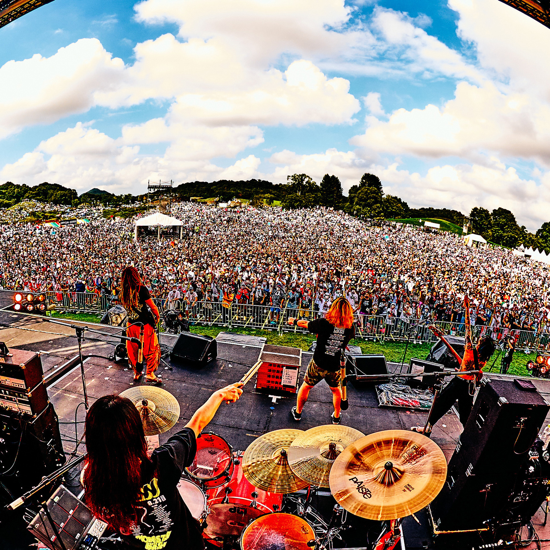 1曲目の「シミ」を終えるや否や、ナヲがそう叫んだマキシマム ザ ホルモン。『モンバス』のホルモンと言えば、高松出身のダイスケはんのお母さん、光枝さんの登場がおなじみだが、今年はPA卓のところでマイクを持っている姿が画面に抜かれ、息子と掛け合いでMC、という出方。今年のホルモンは、各地のフェスで「恋のおまじない」のやりかたを画面で説明しているが、その画面の写真も光枝さんだ。無言のままのオーディエンスが、一糸乱れぬ「麺カタ・コッテリ・ヤッター!」を繰り出すさま、圧巻だった。