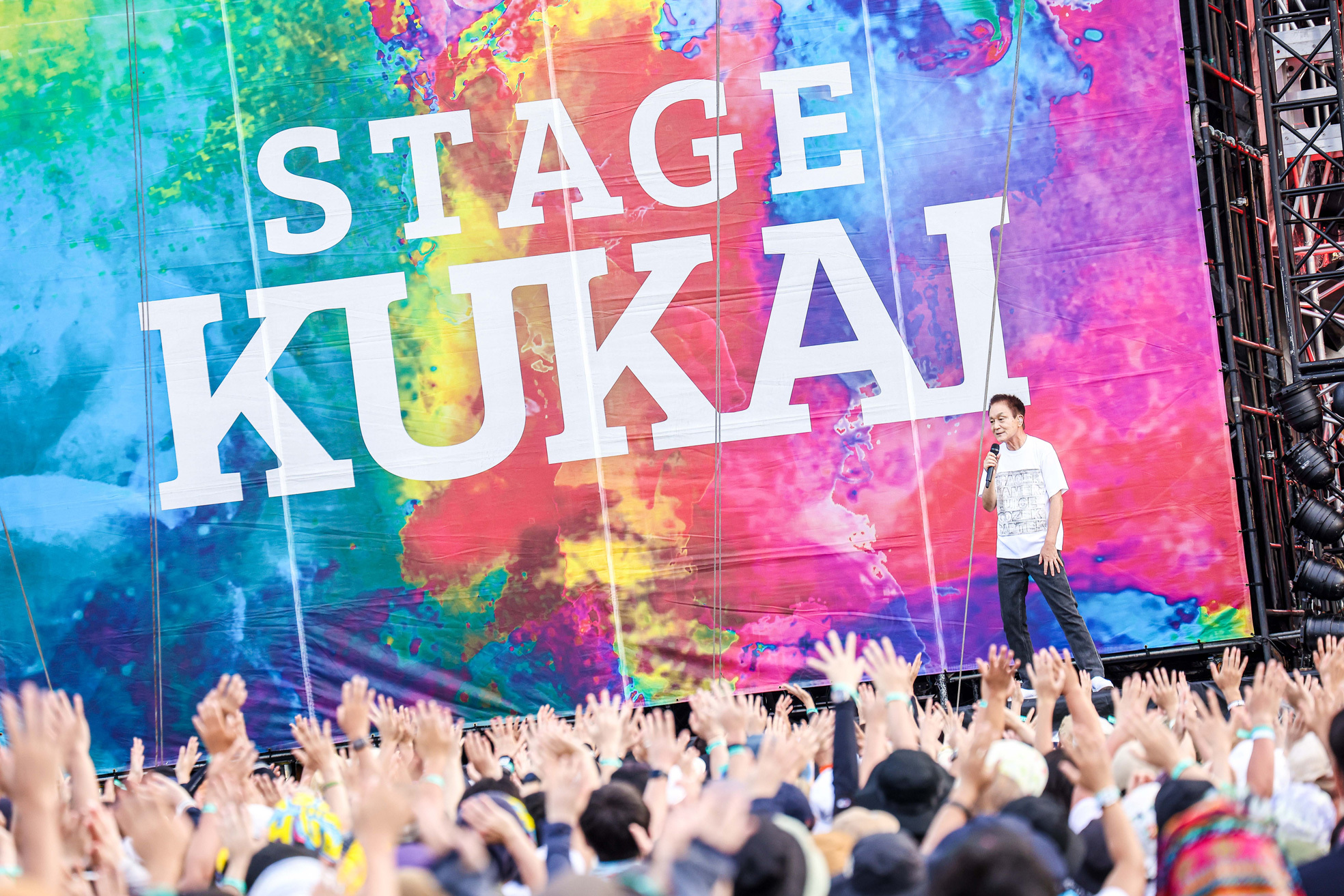 マカロニえんぴつがSTAGE龍神に登場する前に、横のSTAGE空海に登場したのは小田和正。初日のライブレポートに少し書いたが、御本人いわく戦友のDUKE宮垣会長との絆も感じる素晴らしきライブだった。国民の心を掴んで揺さぶる歌とはこういうものだというのを魅せつけられた素晴らしく凄まじいライブ。1曲目「たしかなこと」から感動で、ただただ自然に涙腺が崩壊していた。そんな後に若者が、どう立ち向かうのかは、とても興味深い。同じ板の上に立てば大御所も新人も関係などないのだ。ボーカル&ギターのはっとりは、登場するや観客の方向を両手の人差し指で指す。あれ、このポーズ、さっき小田和正がやってなかったっけと思った瞬間……<時を超えて>と歌い出す。まさかの「たしかなこと」カバーに観客からもどよめきが起き、こちらもライブレポートを忘れて大興奮して痺れてしまった。一節ではあったが、完璧な掴みだったし、何よりも委縮すること無く堂々と大御所からの歌のバトンをしっかりと掴み取り、しっかりと繋いだのが素晴らしすぎた。