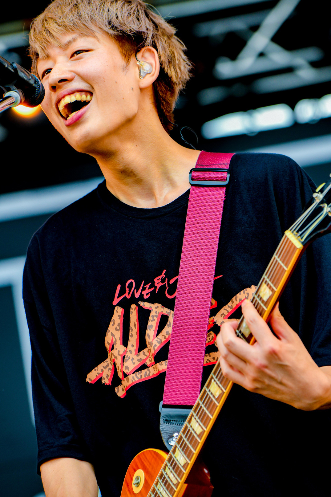 さて、兵庫さんからのバトンを繋いでいきます。BiSHについては、既に兵庫さんが書かれてるが、同じ事務所でSTAGE龍神にトップバッターで登場したBiSにも触れたい。というか、BiSHの様な楽器を持たないパンクバンドと謳うグループが凄く際立つ存在になるのも『モンバス』の特筆すべき点。BiSも激しく踊り狂い、時には組体操みたいな振り付けで、その上で変顔までしている。ある意味、彼女たちもパンクである。それもピーカンな太陽の照り付けた時間帯では無いとはいえ、ゆうに30度は軽く超して、湿度が高すぎる中でのパフォーマンス。そんな全身全霊さには、今年45歳のロック好きおじさんもジャンル関係なく、ただただ頭が下がる。生き様が、いかにロックしてるか、いかにパンクしてるか、そんなところをモンバスは重要視しているのだろうなと、このBiSの時にふと思ってみたりもした。