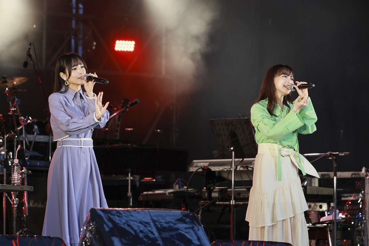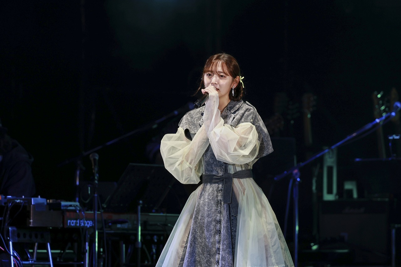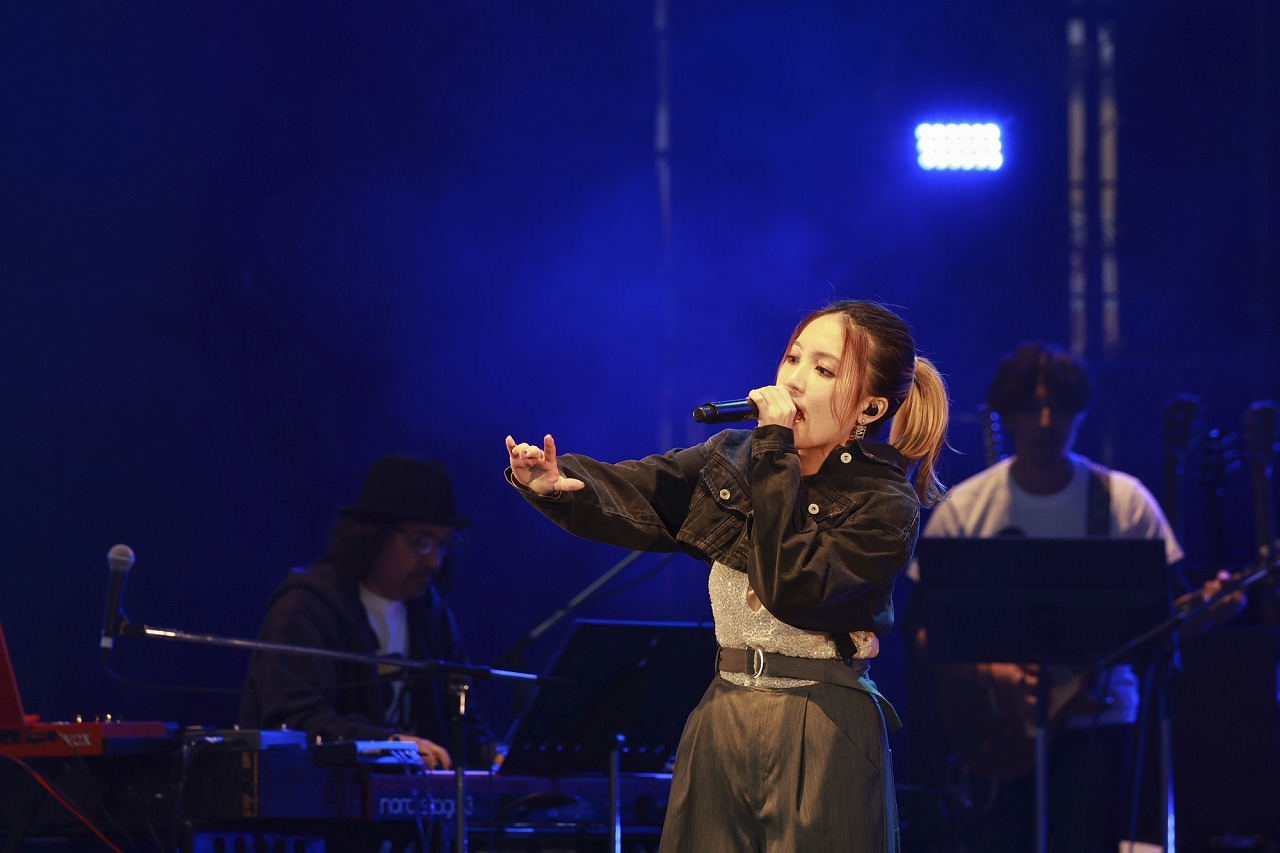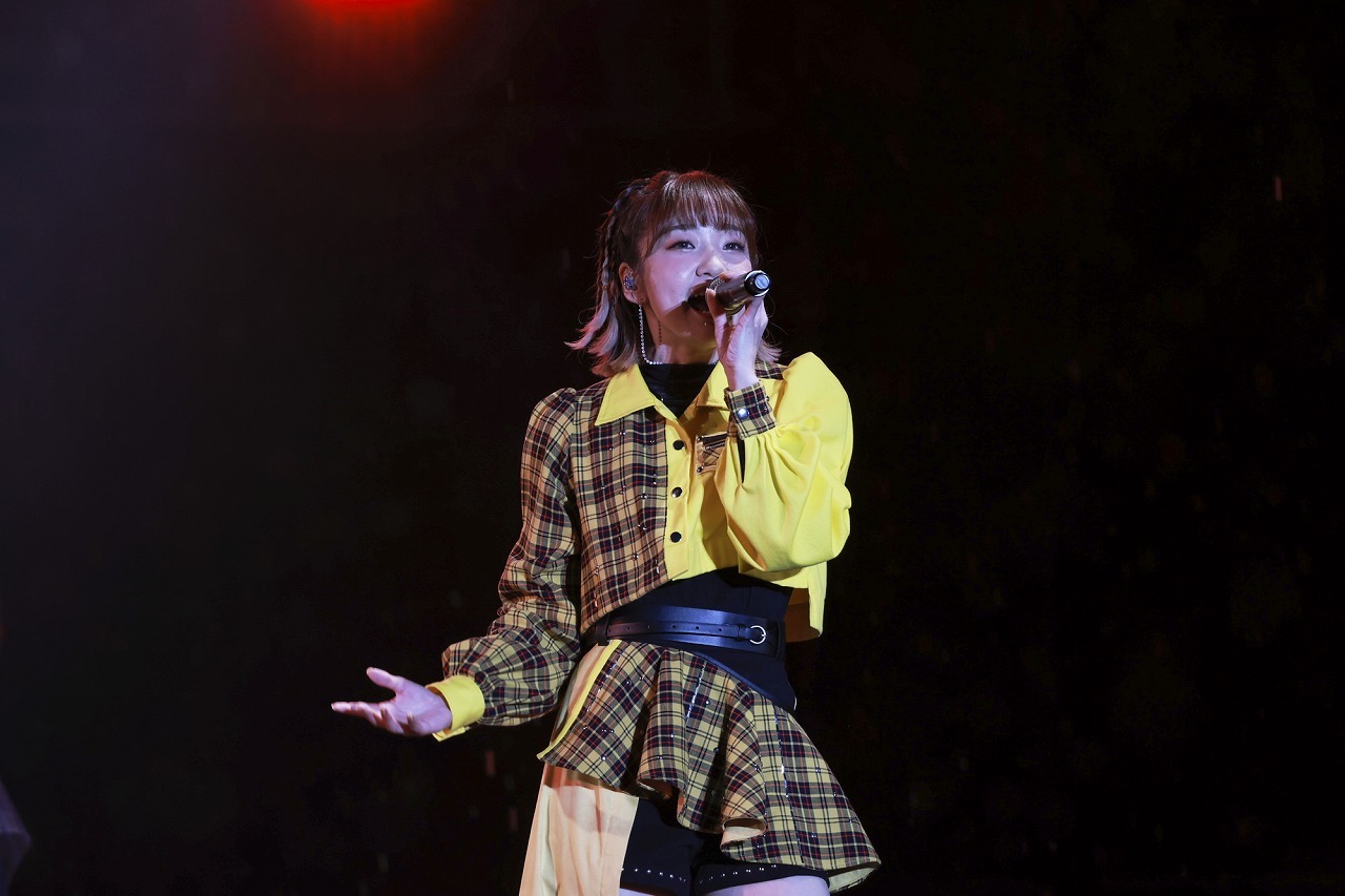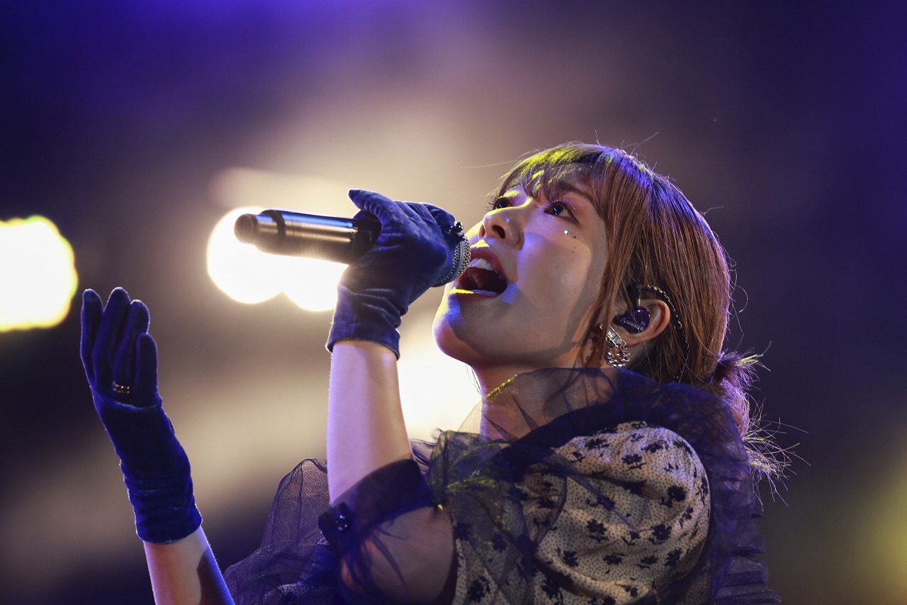 もともと℃-uteのメンバーで、現在はソロアーティストとして輝いている鈴木愛理。登場すると目を閉じ、「IDENTITY」の歌い出しを待つ。合間のロングトーンもすごい! 「今日は最高の夜にしましょう、CLAP!」と観客をあおり、「Break it down」「rescue」と続けて歌う。楽しそうな姿、キュートな笑顔に魅入られた人も少なくないはずだ。「コロナ禍の毎日でどうしようもなかったことが多いけど、歌を通してパワーを届けたいと思いました」と歌ってくれたのは「Be Brave」。「空は二度燃える」では、少し大人な表情を見せた。「初めて参加する人も多いと思いますが、私のライブは自由です! 雨を吹き飛ばすくらい盛り上がってくれますか?」と、「ハートはお手上げ」でみんなの手拍子に合わせて楽しそうに歌う彼女は可愛さ爆発。さらに「DADDY! DADDY! DO 」から、王道アイドルソング「初恋サイダー」で幸せな時間は終わりを告げた。