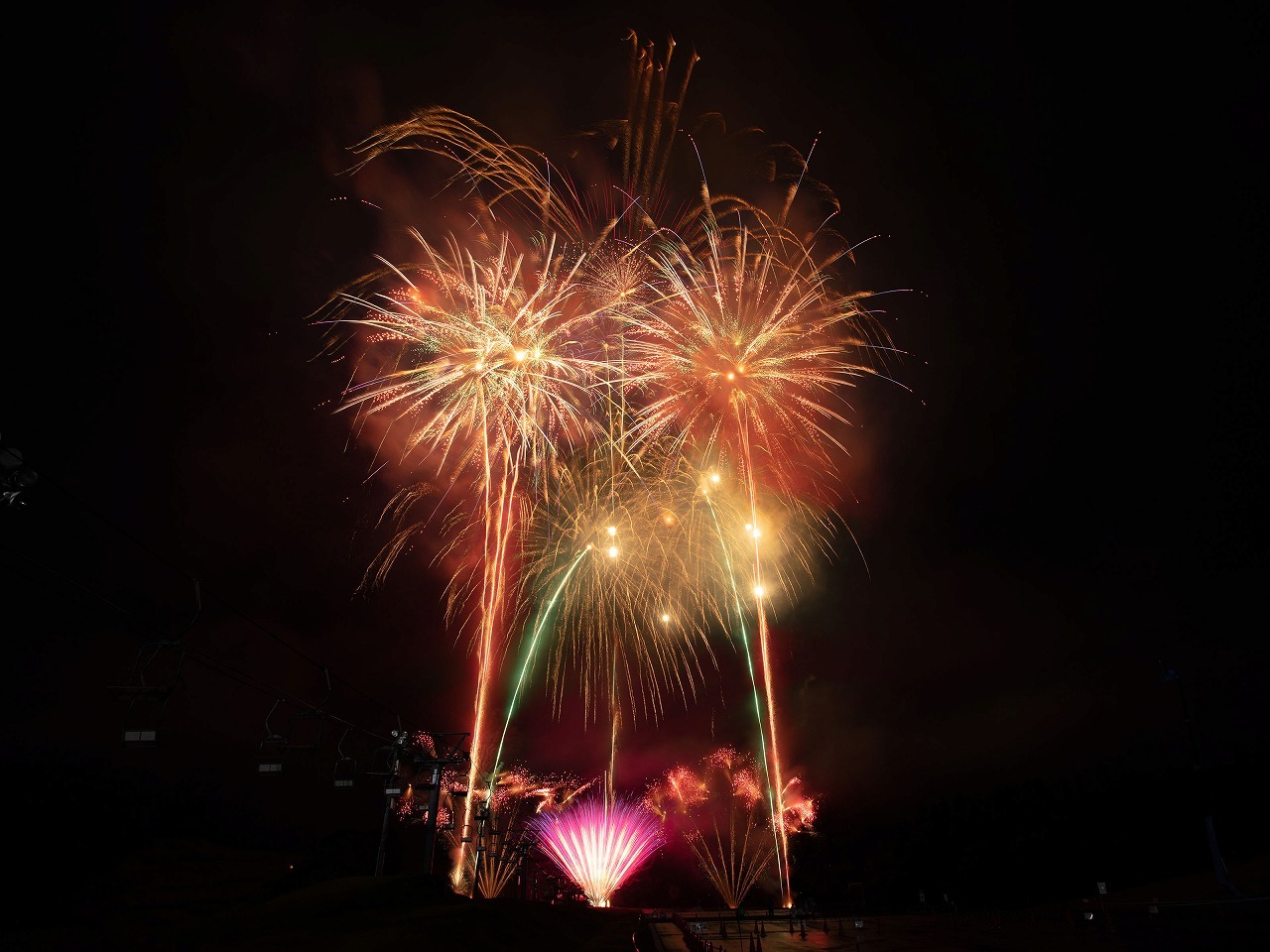 最後はMCが再登場。花火の打ち上げを案内する。加藤は長岡の花火大会を見たことがあるのだとか。とくに米百俵フェスでの花火は、「落ちてきそうなくらい近いんですよ」と当時の思い出を語った。加藤にとって4年ぶりの米フェスの花火、昨年は延期公演が屋内での開催となったため、花火の打ち上げは行われなかったので、2年ぶりの東山での花火の打ち上げとなる。この日の花火は3プログラム。長岡花火で使われる様々な花火玉に加え、色鮮やかな花火を組み合わせて打ち上げる『オープニング スターマイン THE 長岡花火』が夜空を飾った。