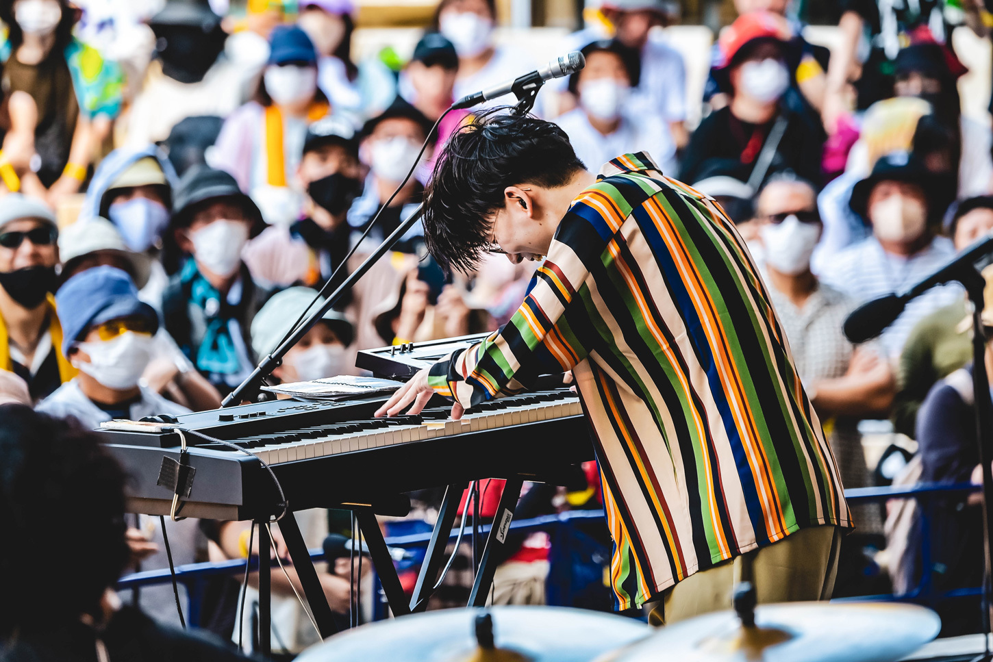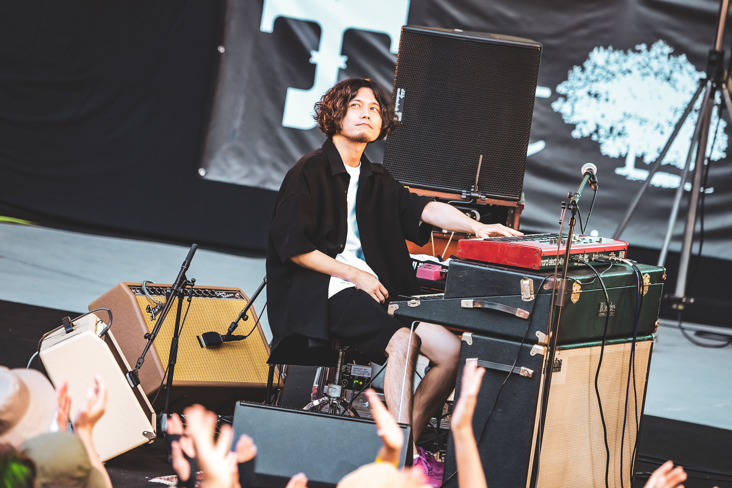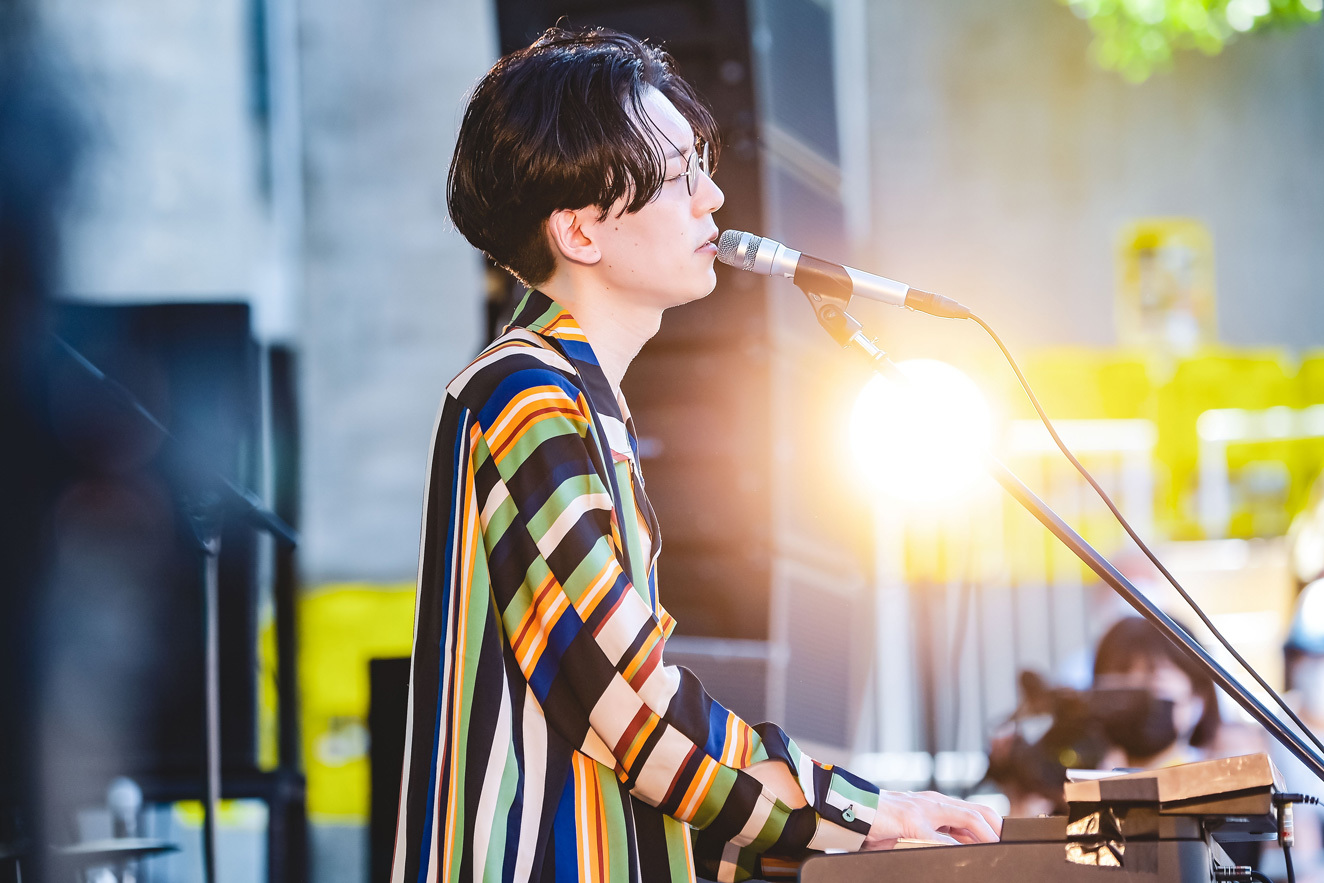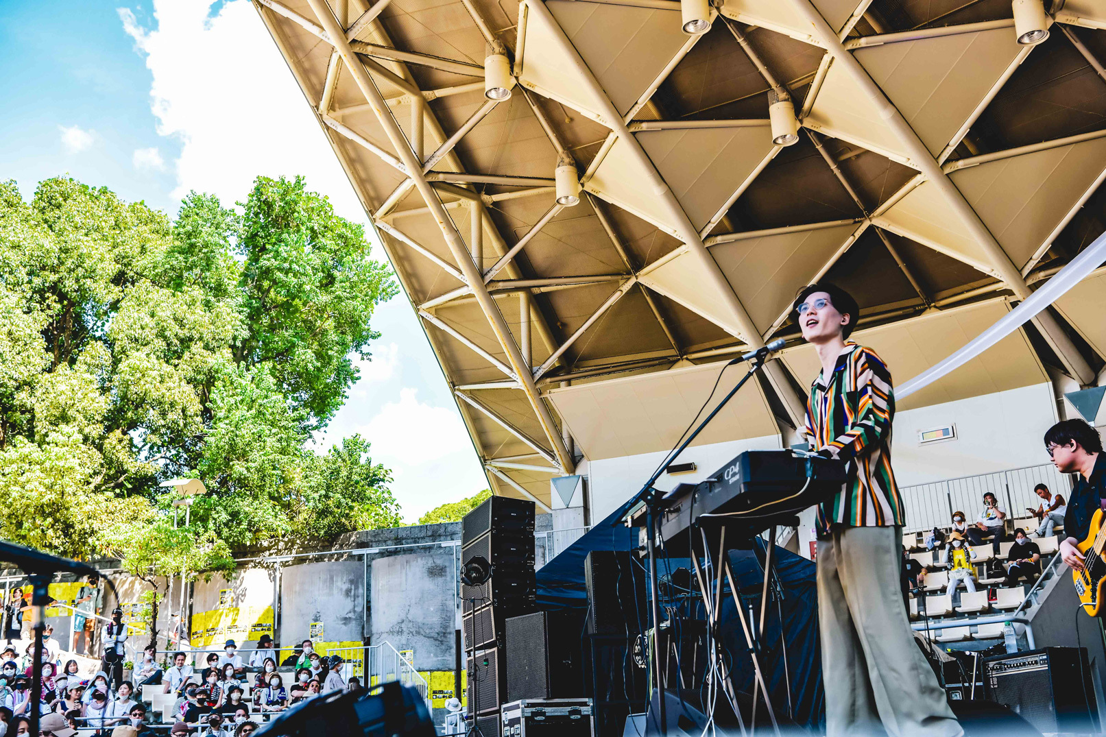 一方、服部緑地野外音楽堂にはKan Sanoが登場。サックス、ドラム、ベースとのバンドによる「Magic!」でライブをスタートさせる。最新アルバム『Tokyo State Of Mind』の収録曲を中心に、「I MA」「Tokyo State Of Mind」「Play Date」「逃飛行レコード(98bpm)」、「Natsume」と惜しげもなく披露。ラストはフジファブリック「若者のすべて」を弾き語りでカバー。夏の終わりを観客とともに噛み締めるように、センチメンタルに歌を届けた。