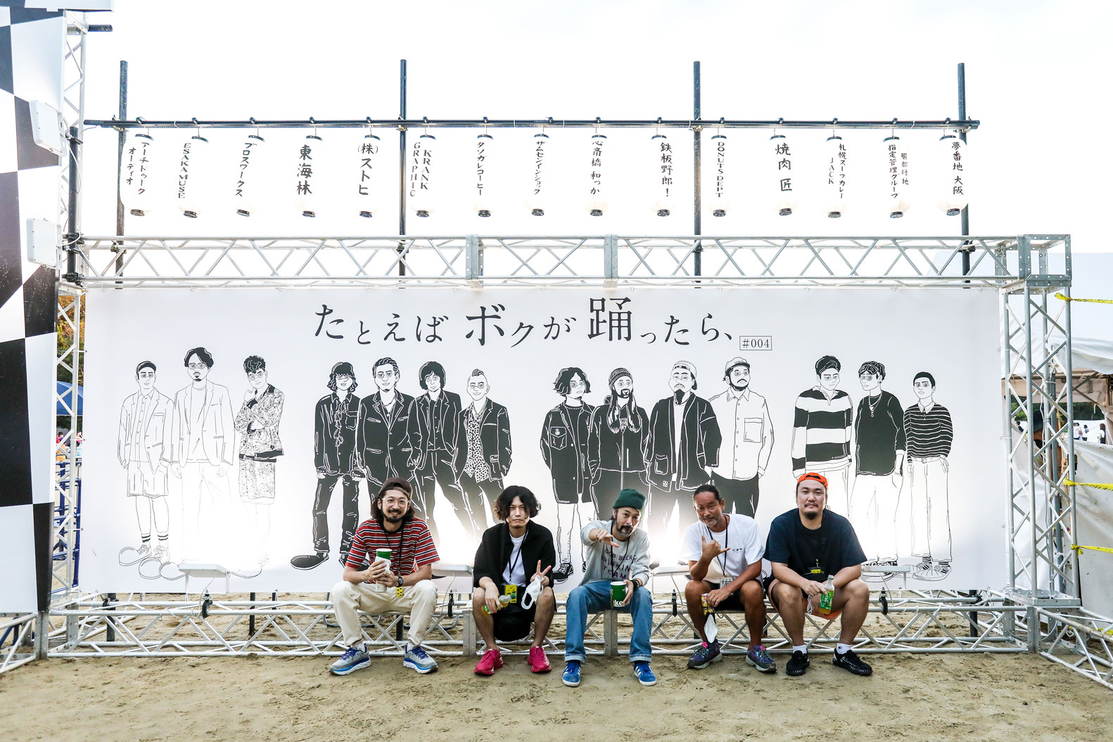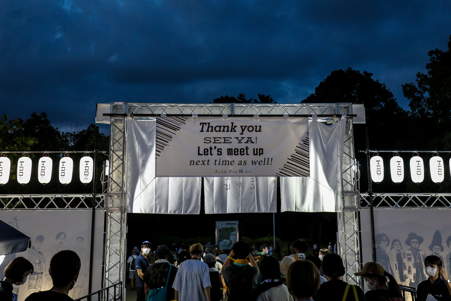 そういった経緯もあり、再び服部緑地野外音楽堂の1会場のみで開催された、2019年の『ボク踊 #003』の頃には『ボク踊』連続参加の常連客も多く、このイベントを共につくりあげていく精神がはやくも醸成されていた。そして2020年、全世界で新型コロナウイルス感染症が猛威をふるい、フェスやライブだけでなくあらゆるカルチャーが歩みをとめざるをえない状況に。それでも『たとえばボクが踊ったら、presents Chillax』と題して、自治体のガイドラインを遵守した上で、どこよりも早く野外の有観客ライブを開催。イベント開催決定からわずか1ヶ月半、告知から当日まで10日というスピードで行われた。だれもが戸惑い手探りだった状況で、だれかがやらなければという切実な想いをもっての英断。大阪から再び音楽が鳴らされ、ライブの火が灯される節目となった。しかしながら、時勢により2021年は開催を断念。そして、今年3年ぶりに『ボク踊♯004』として2会場での開催が実現した。天候や新型コロナという苦難を乗り越え、ようやく無事開催することができたのだ。