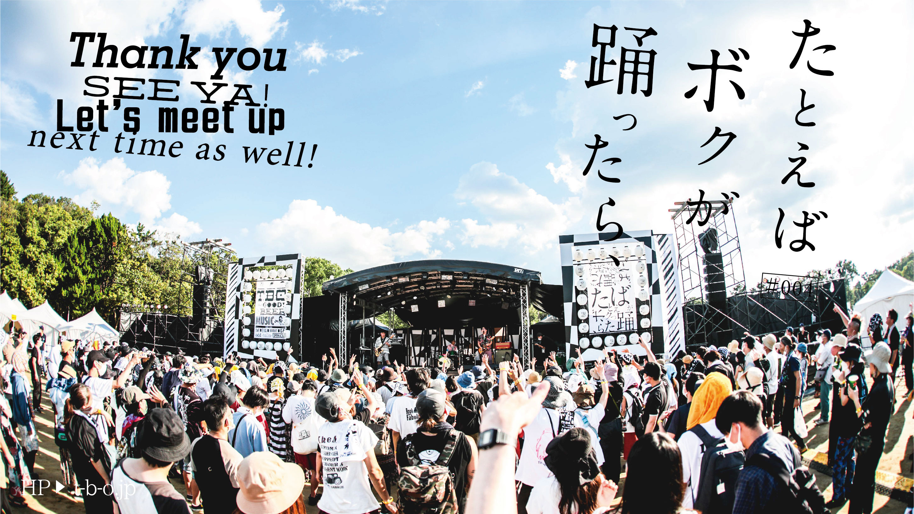 そして2018年、服部緑地野外音楽堂に加え、同じ服部緑地公園内の10分ほど歩いたところにある、服部緑地スポーツ広場Aに特設ステージを新たに設け、規模を拡大し『ボク踊 #002』が開催された。初年度の伝説的幕開けの記憶も新しく、また当時は服部緑地公園で大規模な音楽フェスが開催されたことがないという前人未到の地であったこともあり、これまた発表と同時に話題を集め、音楽好きはどんなフェスになるのか期待を膨らませていたのだった。しかし、直前に関西を大型台風が直撃し、各地で甚大な被害を受ける。例に漏れず、緑地公園も公園内の木や鉄柱までもが倒れるなど大きな被害を受けた。しかし、公園の職員と運営スタッフの尽力のもと開催できると信じてギリギリまで全力で復旧。直前まで電気が通っていない、という絶望的な状況を乗り越え、安全面を確保した上で無事開催にこぎつけた。現場にはまだ、痛々しいほどの台風の爪痕が残っていたものの、あの頃は多くの人が心を痛めていたからこそ、フェスが開催され音楽が止むことなく鳴らし続けられたこと、おもいっきり大好きな音楽に身を委ねられることに心が癒され励みとなり、ほかにはない多幸感がグルーヴとなっていたことを覚えている。
