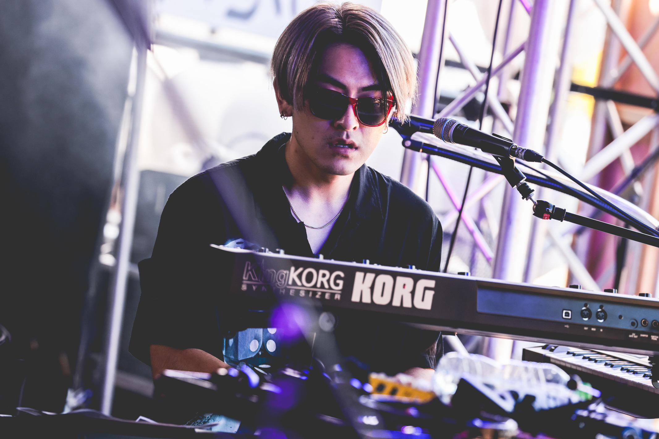 セッションからシームレスに楽曲を繋いでいき、初のフルアルバム『EGO APARTMENT』から全曲+αを披露。待ってましたと言わんばかりにクラップとハンズアップで応える観客たち。Dyna(Laptop/Bass)「人生で1番でかいステージ」と感慨深そうに語るも、楽曲のスケールからすればもっと大きなステージでも似合うと感じるほど、堂々たるアクトでのっけから会場を横にゆらしてゆく。