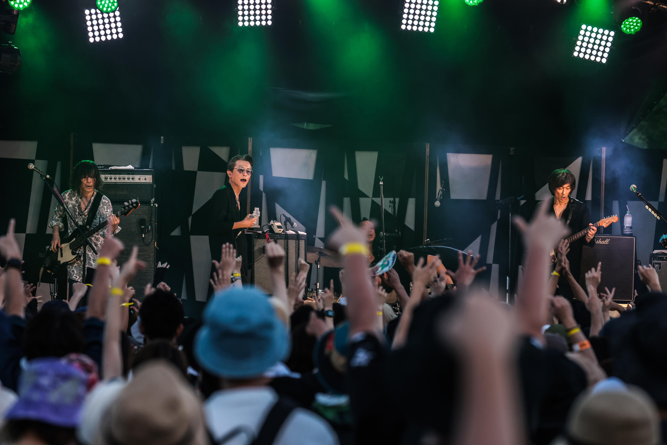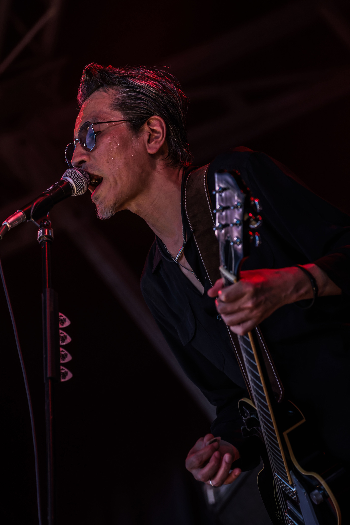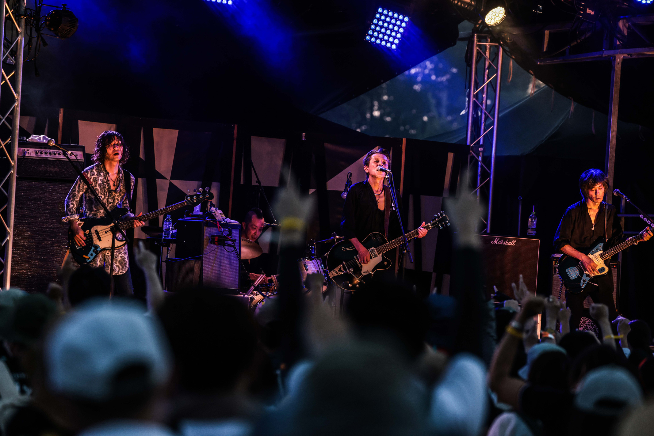 そしてラストを飾ったのは、The Birthday。機材トラブルで仕切り直す冒頭で、咄嗟にチバユウスケ(Vo.Gt)がハーモニカを奏でて即興演奏。これまたライブならではのシーンに心が弾む。いよいよギターを携え、「12月2日」「ある朝」「月光」と比較的新しい楽曲から「Red Eye」へと繋ぎ、鋭くもじっくりと、ヒリヒリとした展開で魅せていく。