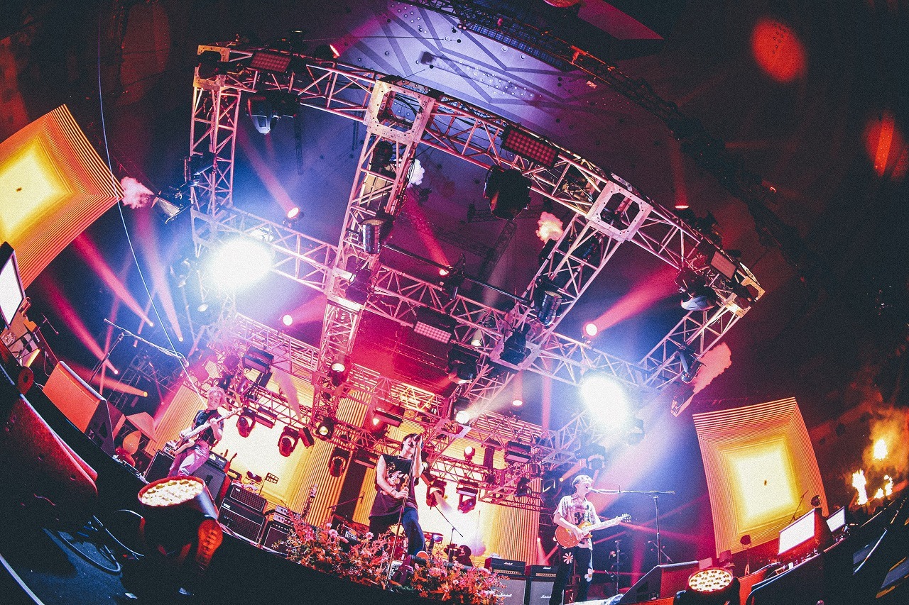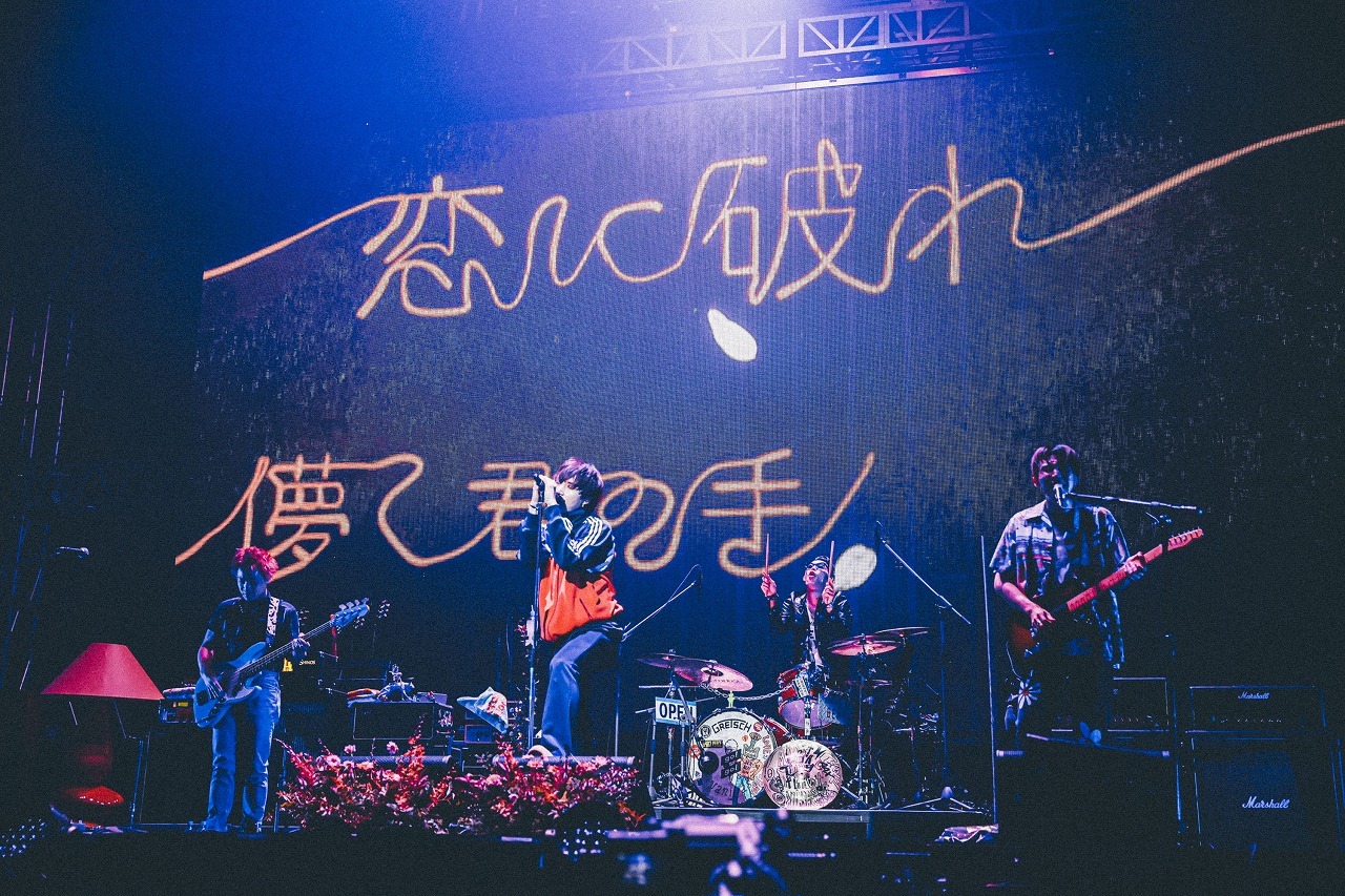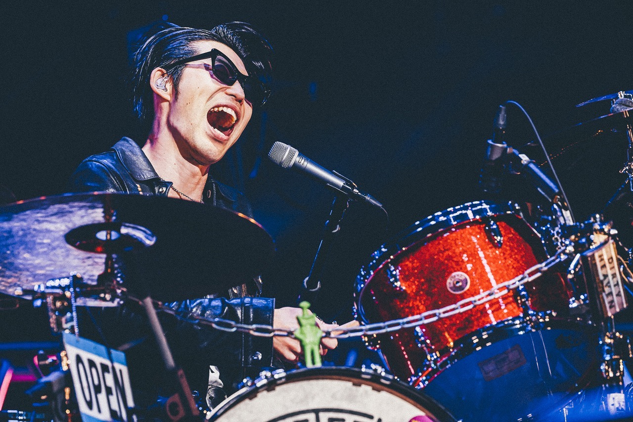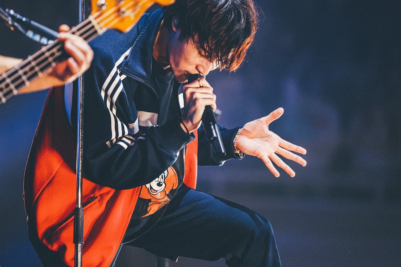 MARVELのギターストラップを愛用している牧の趣味が反映された、アメコミ風の映像とともに披露したのは「Do You Wanna」。スクリーンにどーんとイギリス国旗を映したのは「倫敦」で、ビートルズなどUKのカルチャーに憧れながらバンドをやっている彼らが、その憧れを詰め込んだこの曲を日本武道館で演奏する意味は大きい。スカからパンクまで様々なジャンルを縦断する「one shot kill」ではスモーク、炎、レーザーなど舞台演出全部盛り。「楽しんでくれてる? 感じる、感じるよ!」と牧は笑顔で客席からの拍手を浴び、プリティは「武道館は僕らロックバンドにとっては聖地と言われていて、今、すっげー心が……清らか? みなさんに問います、俺は今、清らかな顔してます?」と、セイヤは「スーパーワーカー、スーパースチューデンツ、全国のみんな、全世界のみんな、ありがとう!(と、「ペンペン」コーラス部をご機嫌で口ずさむ)」と、それぞれに心情を表す。