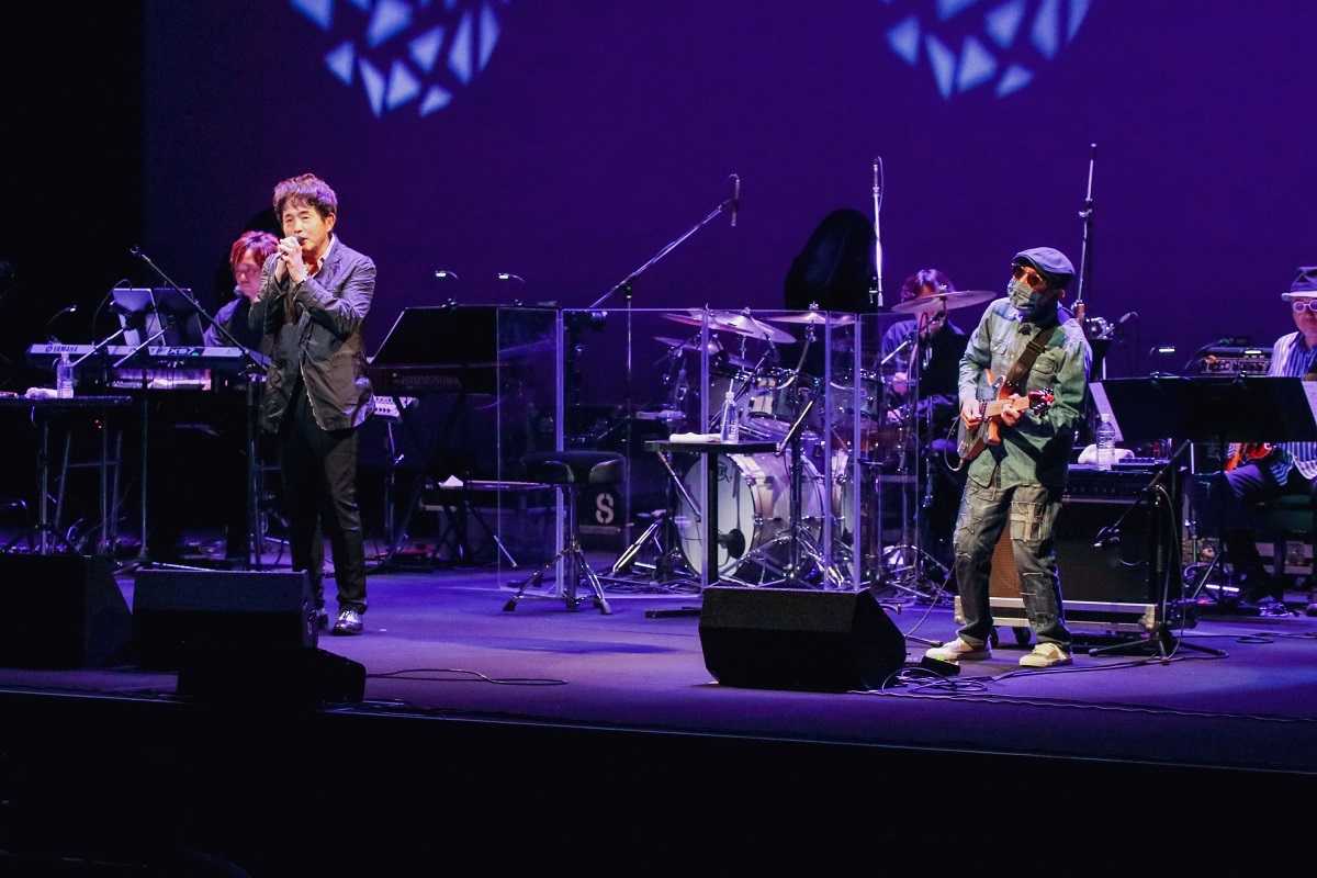 リリースしたばかりの新作ソロアルバム『radio JAOR~Corner stones 8~』からの曲を中心にJ-POPの名曲を次々と披露し、満員の会場から熱い拍手を集めた。なかでもクライマックスの一つとなったのが、かねてより病気療養中だったSing Like Talkingのギタリスト、西村智彦がサプライズで登場。水泳で体力回復をはかっている近況を話した後、アルバムでも参加している「雨のリグレット」で颯爽としたギタープレイを展開して、回復ぶりを印象づけた。さらにゲストとして登場した芳野藤丸が往年の甘いボーカルと切れのいいギターワークで会場を沸かせた。