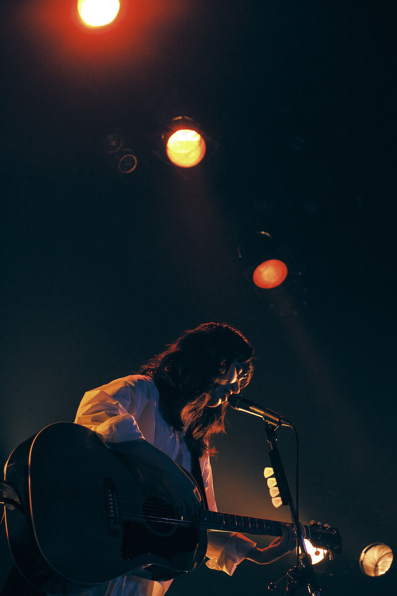 いろんなことがワサワサしたまま5曲目まで進んで、最初のMCで流れが変わった。Karin.は、集まってくれたオーディエンスにしっかりと挨拶し、バンドと過ごすツアーの時間のなかでの発見について話すと、まさにひと息ついたのかもしれない。ただ、その最初の挨拶で「Karin.です。2nd tour“空白の居場所”にようこそいらっしゃいました」と一気に話した場面、お節介な友達なら「そこ、拍手もらうとこ」とツッコミを入れたくなっただろう。なにせ、スタンディングのライブハウスらしい空間でKarin.の音楽を楽しむことを、ファンも彼女と同じくらい待ち望んでいただろうし、その気持ちを彼女に伝える最初のタイミングだったから。もっとも、そうしたぎこちなさのあれやこれやを笑い合ってさらに仲が深まる友人同士のように、お互いの前のめりな伝えたい気持ちを感じ合った後にはいっそう親密な空気が会場を埋め、Karin.の歌はより豊かな表情を見せるようになっていった。
