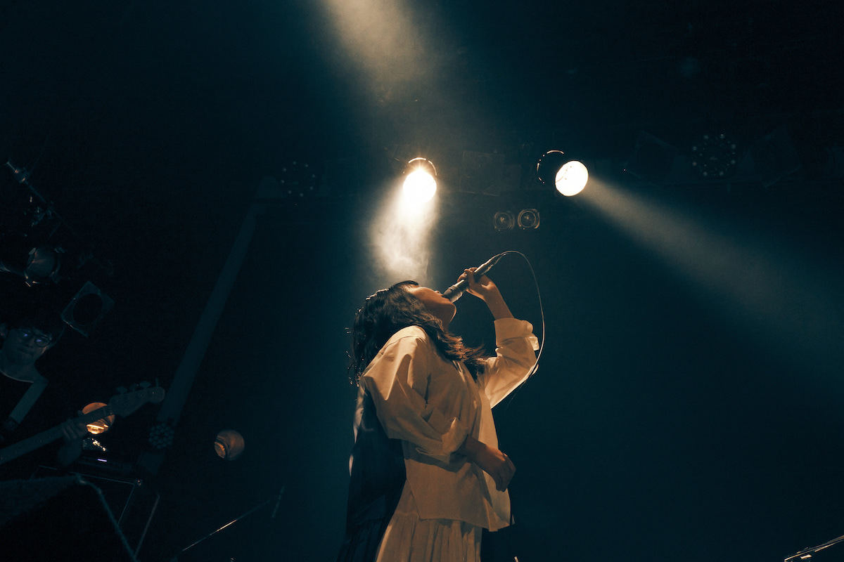 そして、「ずっと歌を歌っていきます」と力強く宣言して最後に披露した最新曲「空白の居場所」は自分が何者なのか“君”に出会えたことでわかったという意味のフレーズで締め括られた。自分の音楽を受け取る“君”がいるから、居場所を確認できる。そういう“君”の存在を間近で感じることが彼女にとってのライブなのだろうし、その現場で自分の足元を確かめるように歌われた「空白の居場所」という曲は、まさしく彼女の現在地を伝える1曲と感じた。その「空白の居場所」も、「永遠が続くのは」や「星屑ドライブ」のように、これからライブの現場であるべき姿の輪郭をよりはっきりとさせていくことになるのだろう。