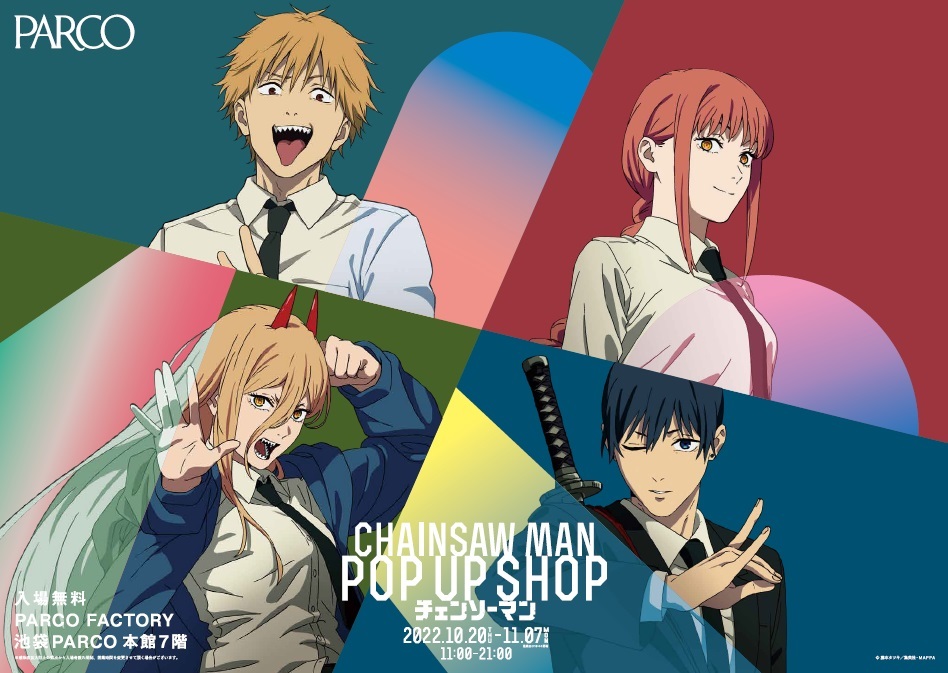 2022年10月11日に放送開始されたテレビアニメ「チェンソーマン」のPOP UP SHOP『チェンソーマンPOP UP SHOP』が10月20日(木)より池袋PARCO7F PARCO FACTORYにて開催されることとなった。