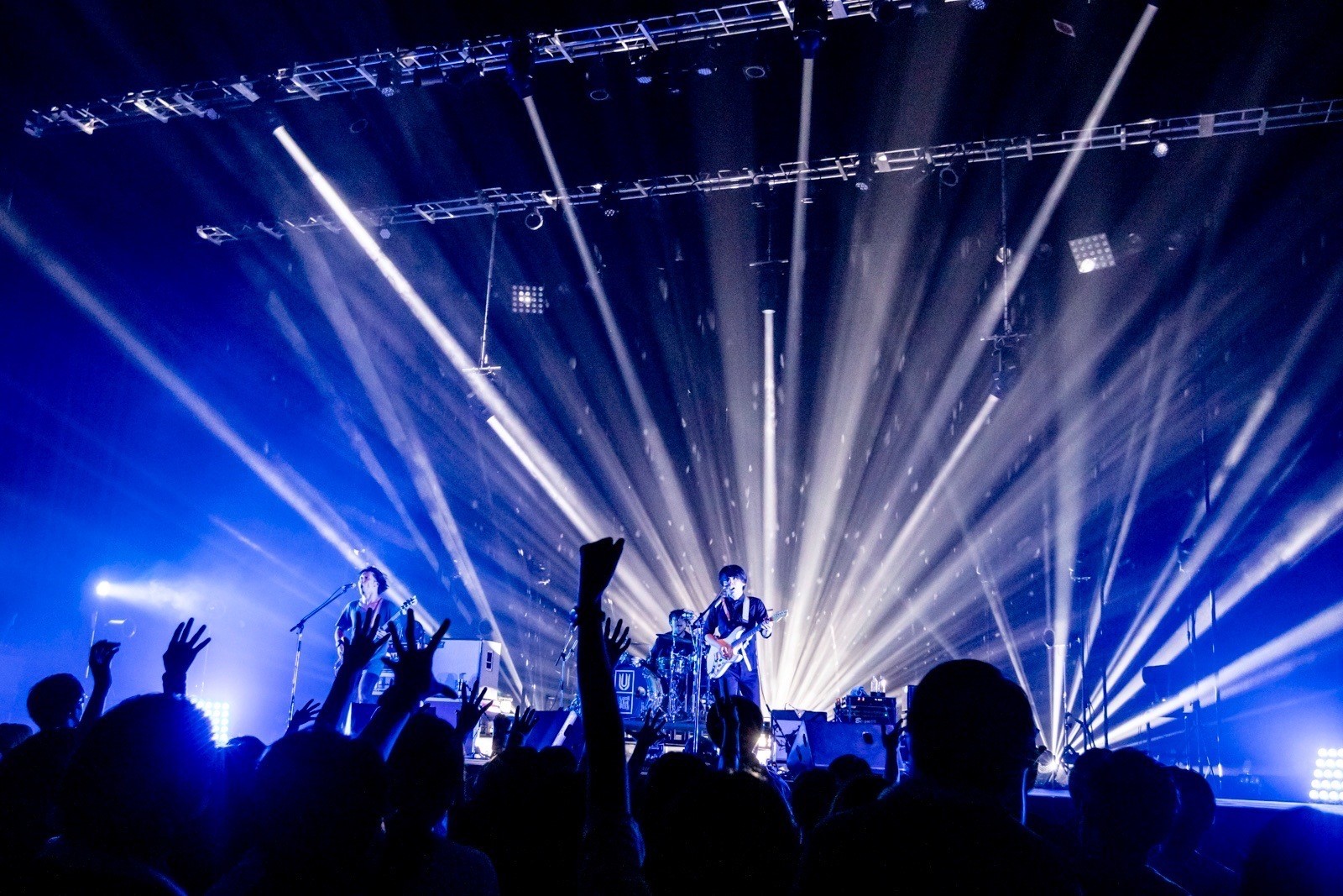 「サンポサキマイライフ」は、観客全員参加の決めどころのジャンプが見事に決まった。「オリオンをなぞる」は、背後に星空のライトが輝き、ミラーボールが会場いっぱいに流星雨を降らせた。このツアーのテーマ曲と言うべき「kaleido proud fiesta」は、これまで隠していた巨大なバンドロゴが現れ、虹色に美しく輝いた。派手派手しい演出は一つもないが、タイミングと見せ方が素晴らしい。何より驚くのは、より技術と精度とスピードを増した演奏のおかげで、昔の曲が生まれ変わったようにフレッシュに聴こえることだ。