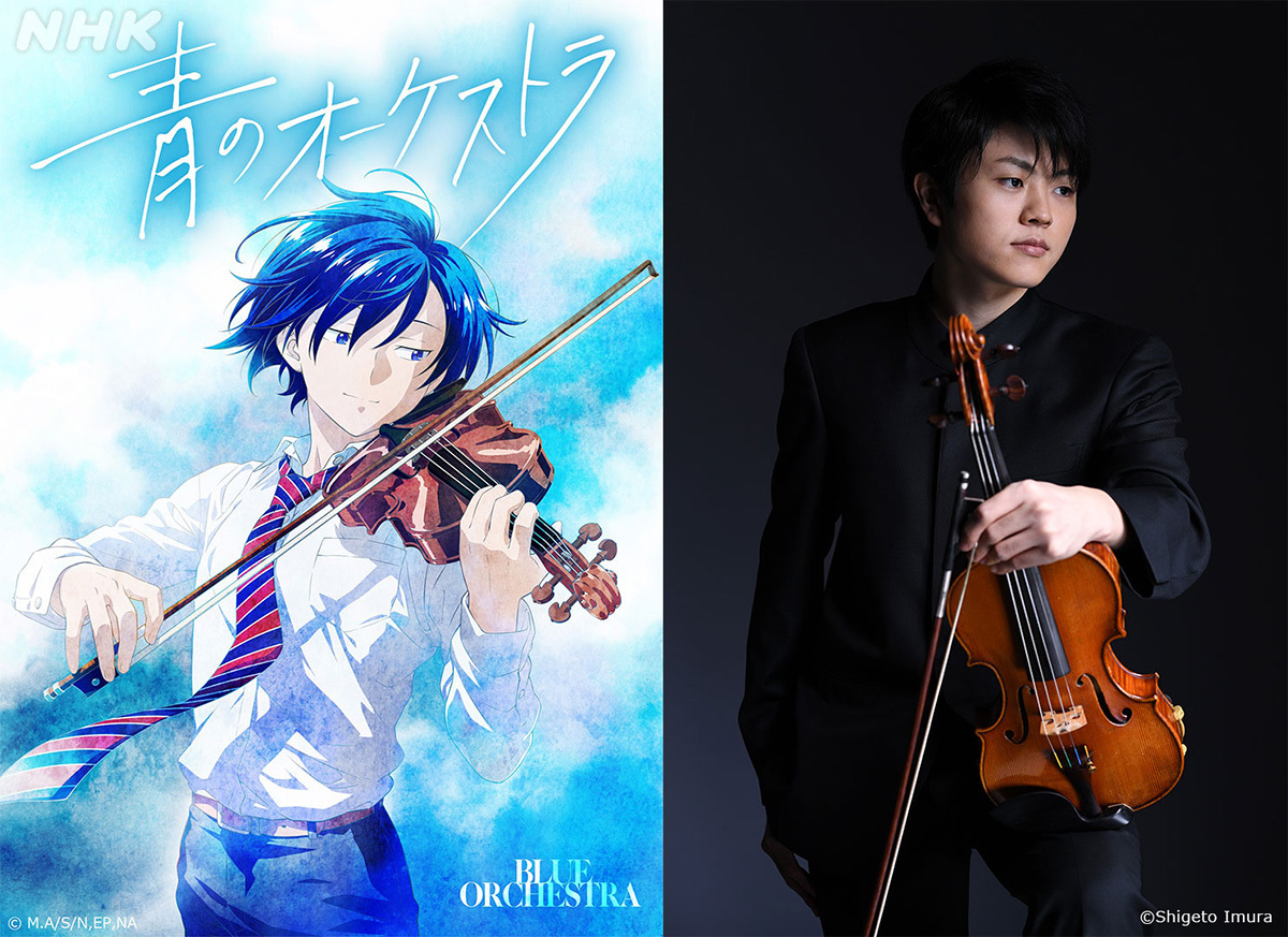 TVアニメ『青のオーケストラ』主人公のヴァイオリン演奏を担当する東 亮汰(右) (c) M.A/S/N,EP,NA (c)Shigeto Imura