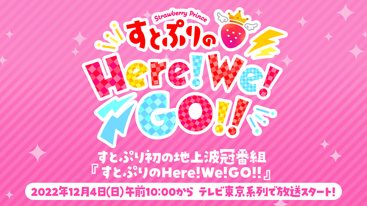 『すとぷりのHere!We!GO!!』は、すとぷりにとって初の地上波冠番組。「気になること、好きなこと、叶えたいこと。一人じゃできないことも、みんなと一緒ならチャレンジできる。」との想いが込められた“バーチャルバラエティー”だ。番組は毎週日曜日午前10時から、テレビ東京、テレビ大阪、テレビ愛知、テレビせとうち、テレビ北海道、TVQ九州放送で放送。2023年3月26日(日)まで続く予定とのこと。