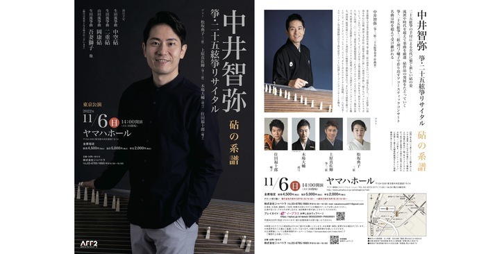 2022年11月6日 (日)ヤマハホールにて、『中井智弥 箏・二十五絃箏リサイタル2022東京公演~砧の系譜~』が開催される。
