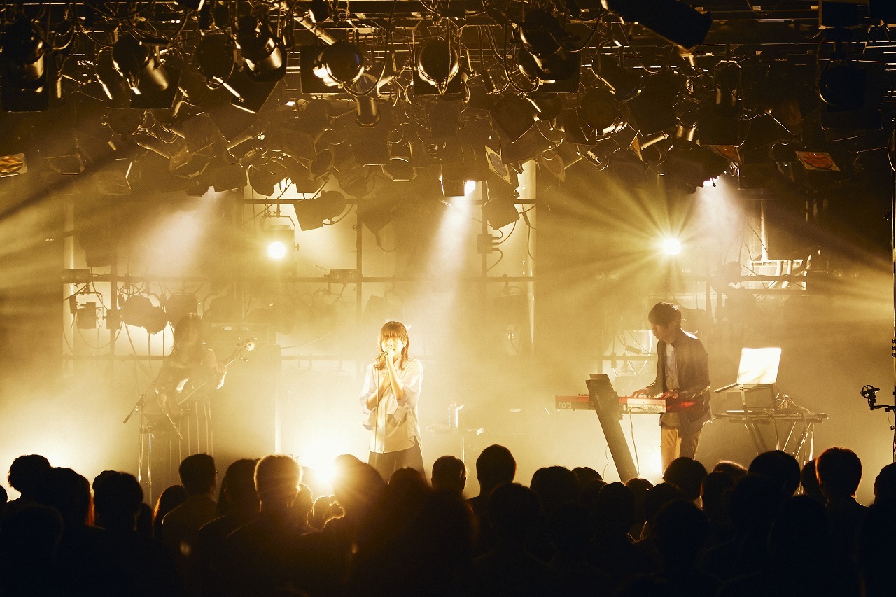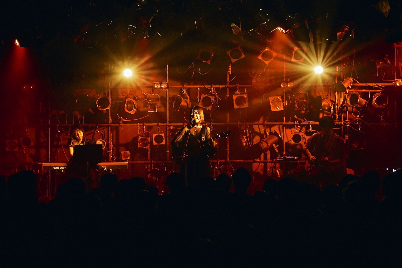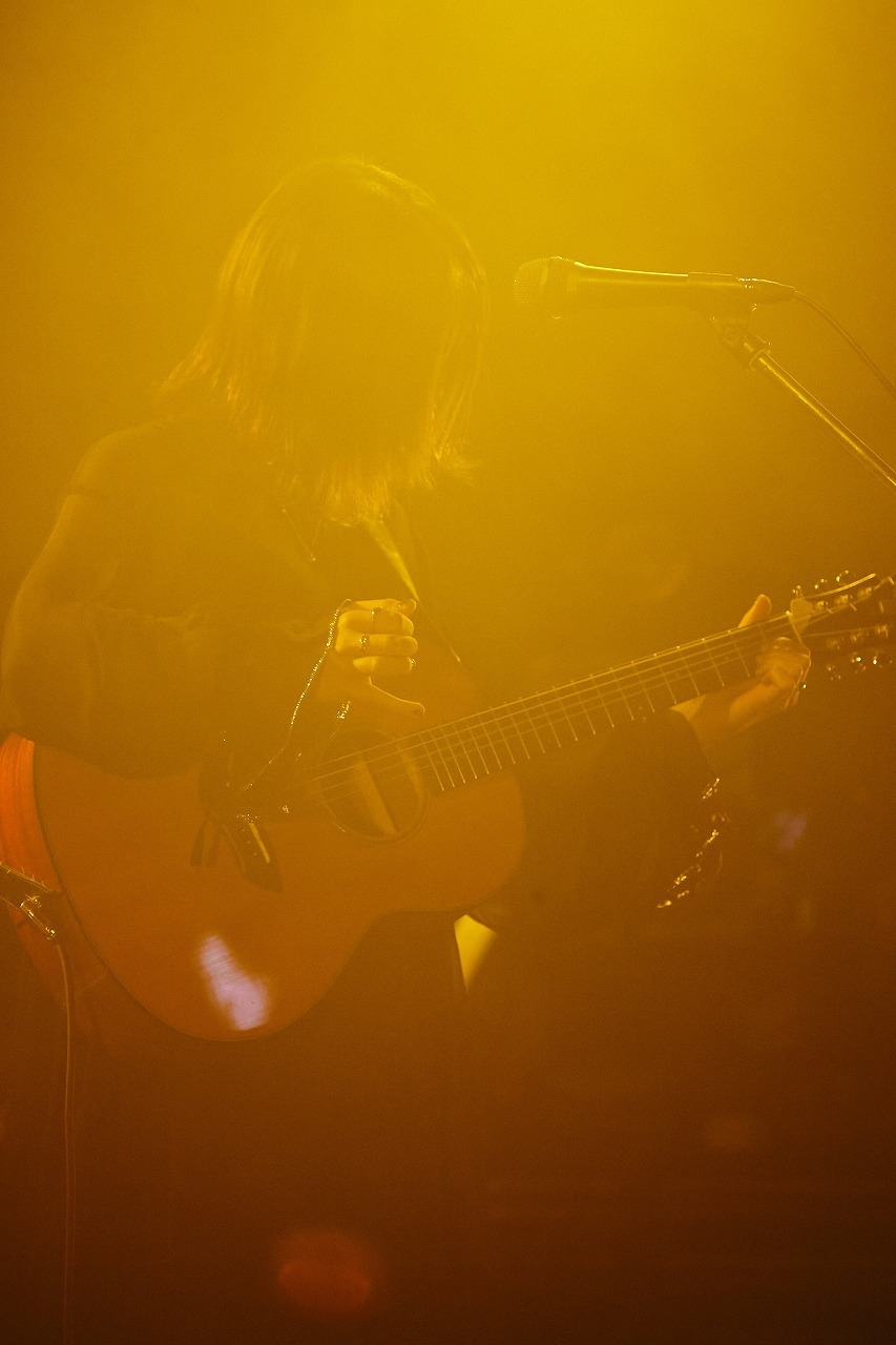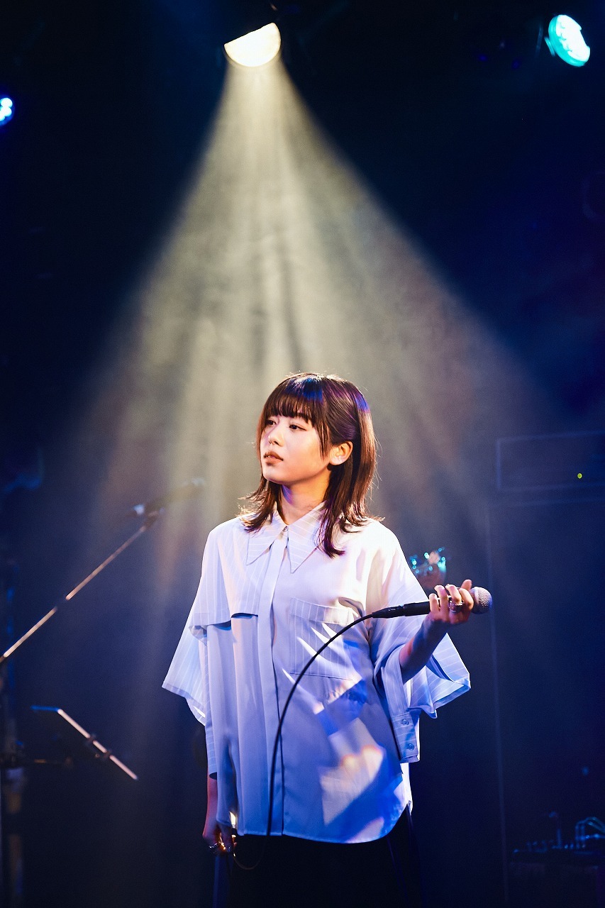 アコースティックギターを抱えながら、「今の精一杯の心を込めて歌いたいと思います」と語った後、気鋭のトラックメイカーであるShin Sakiuraがプロデュースと作曲を手がけ、フレンズのおかもとえみが作詞を担当した「あふれる」では、先程までの切なく物悲しげな雰囲気から一変して、柔らかな笑みを湛えて歌い、日常の何気ない恋愛模様を描いた「Pancake」ではさらにチャーミングにポップに弾む。10月26日にデジタルシングルとしてリリースされる新曲「フェイクファーワルツ」ではジャズロックのようなパンチの効いたサウンドからはっきりとした輪郭を持って歌声を浮かび上がらせるなど、楽曲ごとに多彩な表情を見せた。
