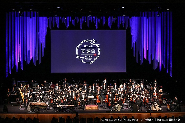 2022年9月11日(日)夜、グランキューブ大阪 メインホールにて、七周年記念企画となる『刀剣乱舞-宴奏会-2022』が開宴した。本公演は、刀剣育成シミュレーション『刀剣乱舞ONLINE』のゲームBGMや主題歌、刀剣男士の近侍曲のオーケストラアレンジを、プロオーケストラと和楽器・ゲスト奏者の編成で行われるコンサート。生演奏の音楽とともに、スクリーンに映るゲームや刀剣男士の映像、季節を巡る光に包まれて『刀剣乱舞ONLINE』の軌跡を振り返ることができる特別な公演だ。