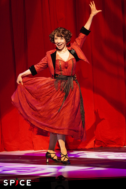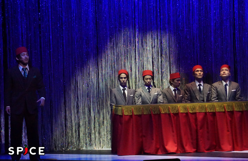 そんなアルバートを何かと助けてきたにも係わらず、なかなか報われることなく(恋人の母親からは人種差別までされる始末)、やがてブチ切れて大胆な行動に出るローズを演じる霧矢大夢は、美しい肢体を強調した華麗なダンスや見事な歌唱を披露して、今回の舞台でもっとも強烈な印象を残す。さすがは元宝塚歌劇団トップさん。特に、謎の秘密結社の面々にスパニッシュな情熱的ダンスで色仕掛けを迫るシーンなど、面白くも圧巻だ。