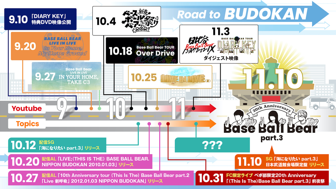 現在バンド結成20周年イヤーのBase Ball Bearが、2022年11月10日(木)に開催する自身3度目となる日本武道館公演を記念して、シングル「海になりたい part.3」日本武道館会場限定盤をリリースすることを発表した。