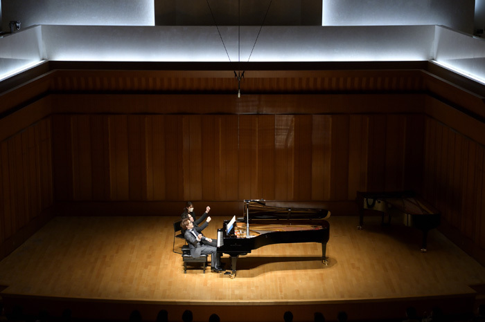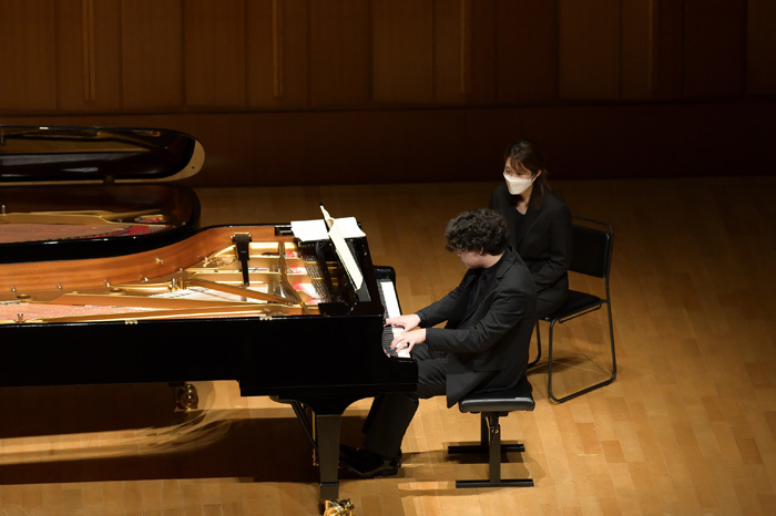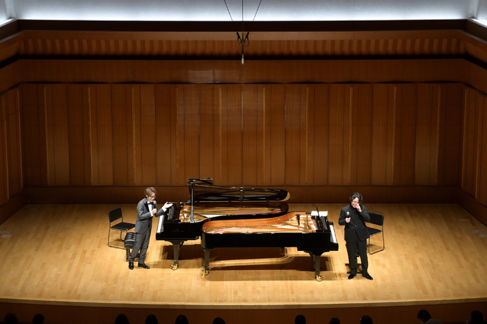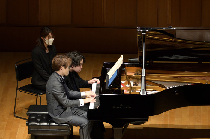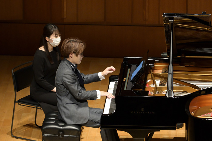 後半の第一曲目はブラームスの交響曲第二番より第3楽章。ブラームス自身が後に二台四手用のピアノ版として編曲した作品だ。ブラームならではのあたたかみに満ちた優しいフレーズを、心を込めて演奏する二人の姿が印象的だった。ちなみにこの作品は髙木が愛してやまないものだそうだ。