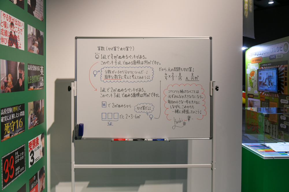 ファン垂涎な限定動画の詳細については実際に会場を訪れて確認してほしいが、例えば『とある男が授業をしてみた』というチャンネルで活躍する教育系YouTuber・葉一のブースには、彼の動画に欠かせないホワイトボードが!