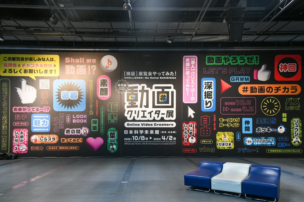 YouTuber(ユーチューバー)に代表される動画クリエイターの活躍とコンテンツ製作の舞台裏に光をあてた特別展『動画クリエイター展』が、2022年10月8日(土)に東京・お台場の日本科学未来館で始まった。はじめしゃちょー、Fischer's(フィッシャーズ)、リュウジなど、今を輝く9組のトップYouTuberをフィーチャーした本展。内覧会当日は本人たちも来場して開幕の喜びを語った。会場は普段からキッズの来館者の多い未来館、そして今や子どもたちの憧れの的である動画クリエイターをテーマにした企画展ということで、今回は親子目線も交えながら本展の様子を紹介していこう。