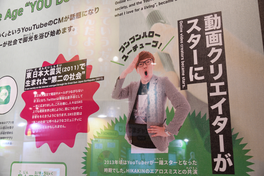 展示の中には2ちゃんねるの開発者で今では“論破王”でおなじみのひろゆき(西村博之)や、VOCALOID(ボーカロイド)という文化を牽引した初音ミク、日本人YouTuberの草分けとなったHIKAKIN(ヒカキン)、そしてVTuber(バーチャルYouTuber)のキズナアイなど、ネットコンテンツ時代の開拓者となってきた面々の紹介も登場している。なお、展示中の難しい漢字にはすべて読み仮名が付けられているので、子どもたちにも親切だ。