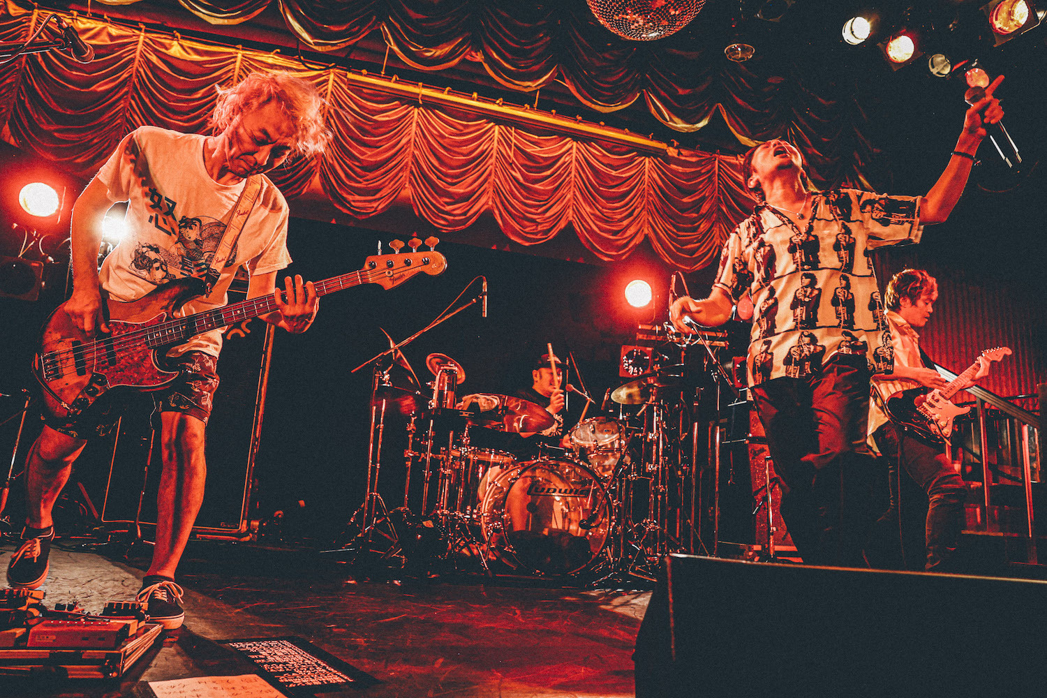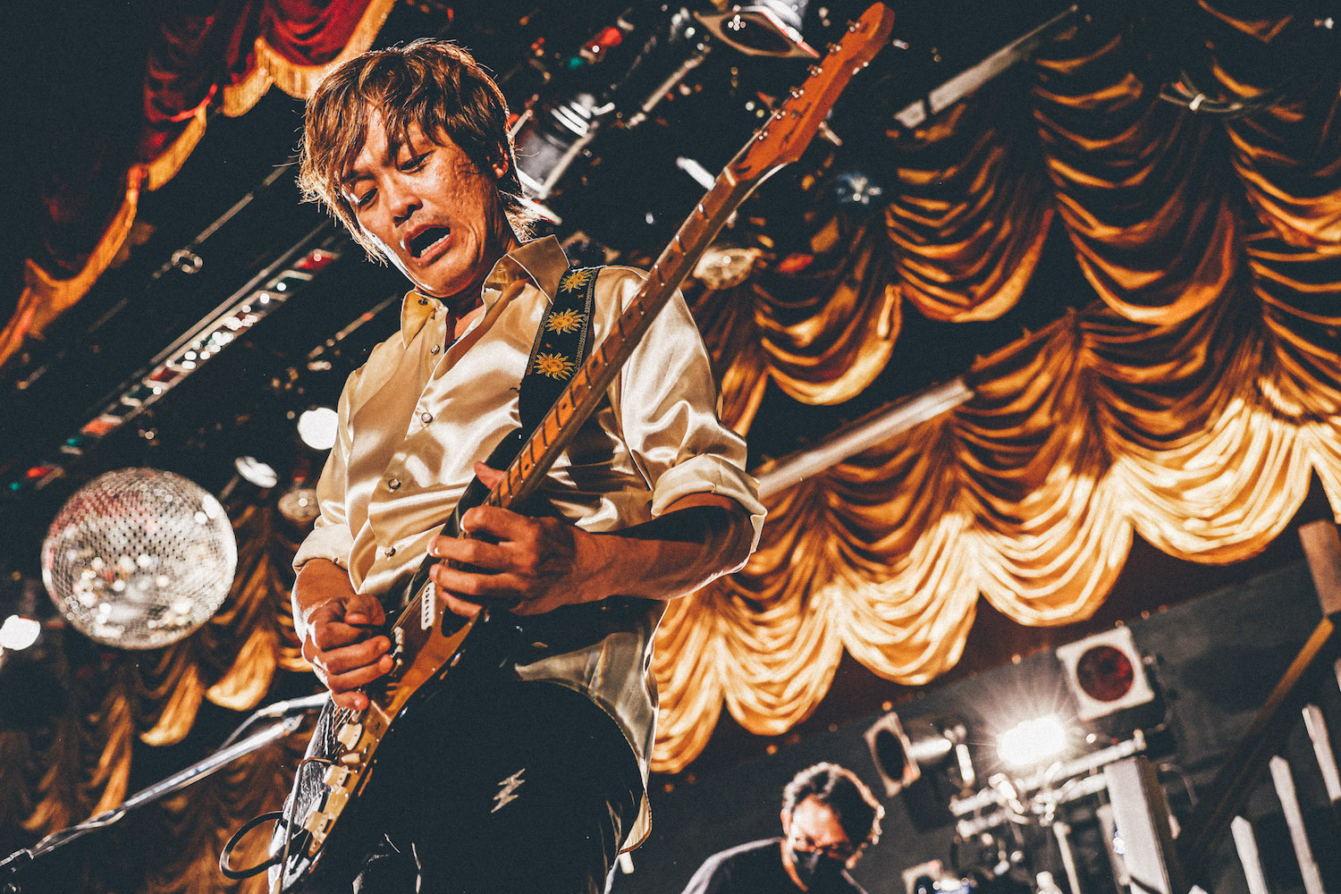 ハワイアンとブルースを掛け合わせた「救いの丘」(1995年発表)、ヒゲダンスとミュージカルを強引につなげる「タイムリッチマン」(2020年発表)、カフカの小説から物語が始まるロックナンバー「むしけらブンブン」(2005年発表)などが違和感なく並んでいる。プレイリストをシャッフルするように自分たちの歴史を面白がれるし、隠すものなど何もない。キャリアに対する自信が今や真似できないオリジナルなのだ。MCタイムを除けばかなりストイックに続くプレイも、改めて記しておきたい魅力である。