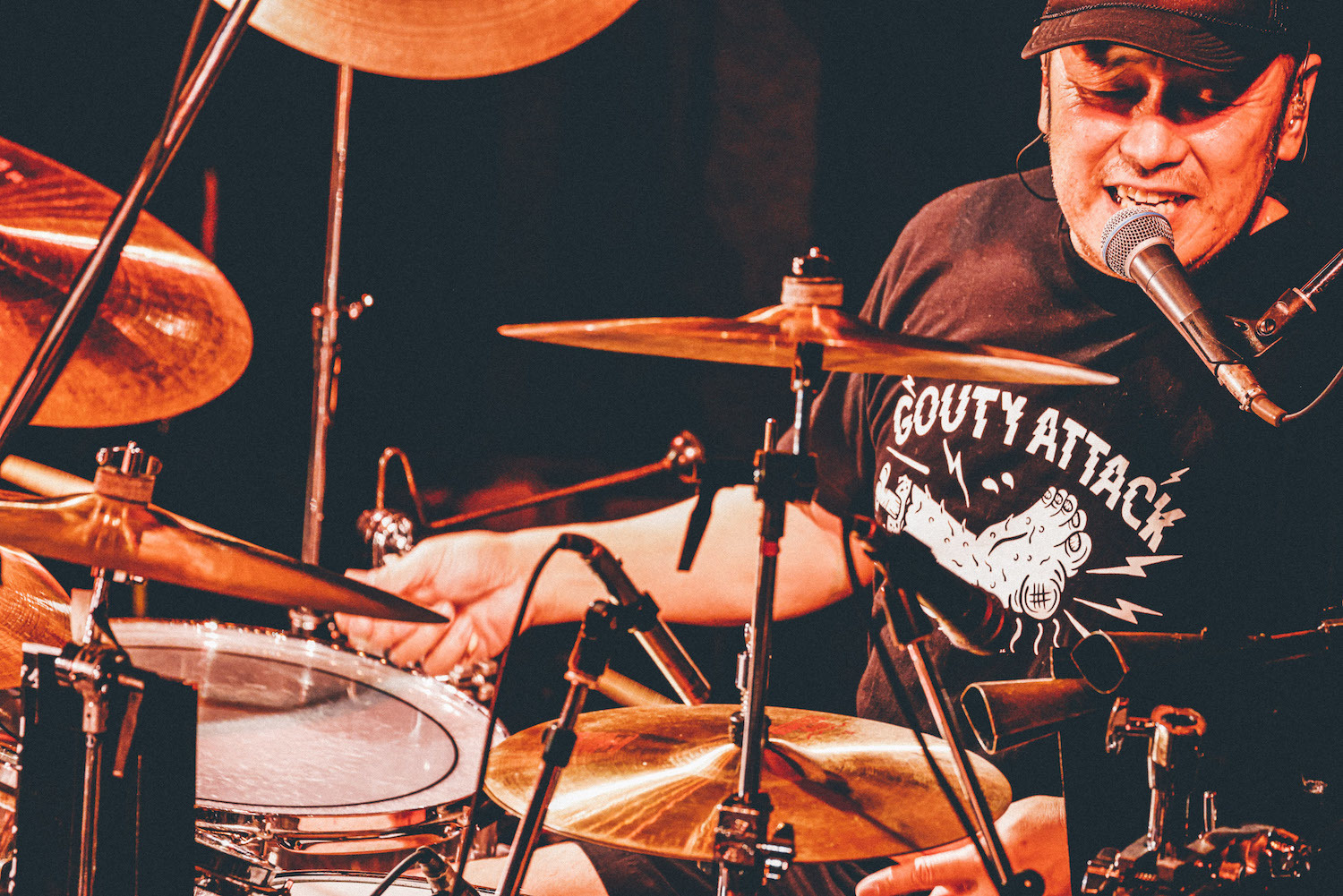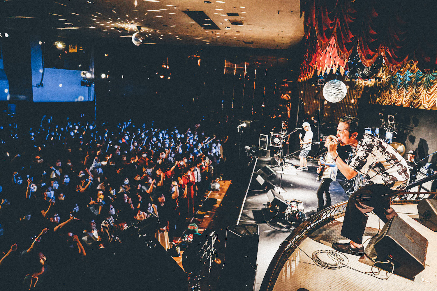 「よく来たぁ!」。開口一番増子直純が口にするセリフだが、景気のいいオープニング数曲が終わるまでに同じセリフが4回も出ていたのは、数日前に『新型コロナウイルス感染拡大予防ガイドライン』が改定されたことも大きいだろう。条件付きとはいえ、声出しOK、コール&レスポンスも4割くらいOK。「酒燃料爆進曲」や「GREAT NUMBER」など、合いの手と身振り手振りがモノをいう曲の盛り上がりが凄まじい。4曲目、「ジャカジャーン!ブンブン!ドンドコ!イエー!」が終わる頃、フロアとステージの呼吸はもう完璧に仕上がっていた。