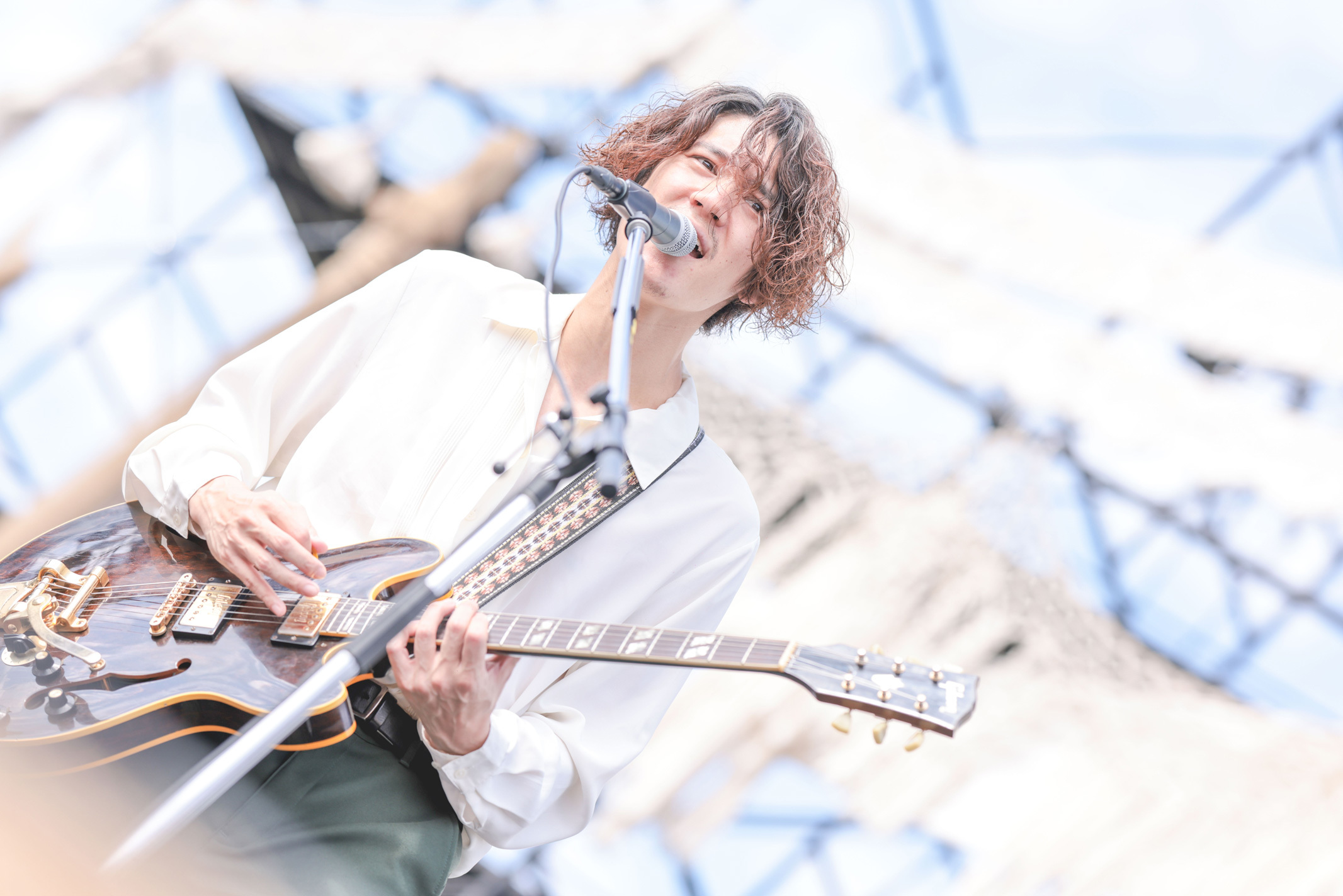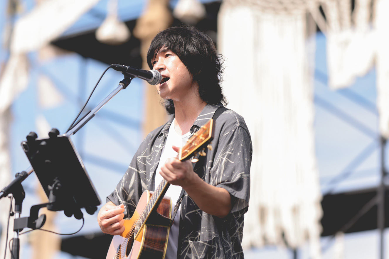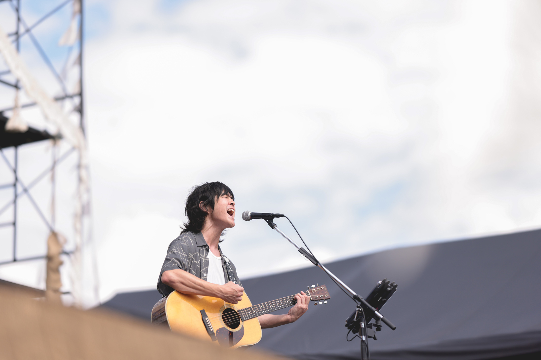 藤巻亮太は予定していたセットリストを直前でがらりと変え、いまこの瞬間にぴたりとハマる楽曲陣で魅せてくれた。1曲目、抜けるような青空にぴったりの「太陽の下」から美しいメロ、美しい言葉を連ねていく。たった1曲であっという間に胸がきゅっと掴まれて、「気持ちよく聴いてもらえたら。今日の出会いに感謝して」という言葉に、大きくうなずく観客たち。
