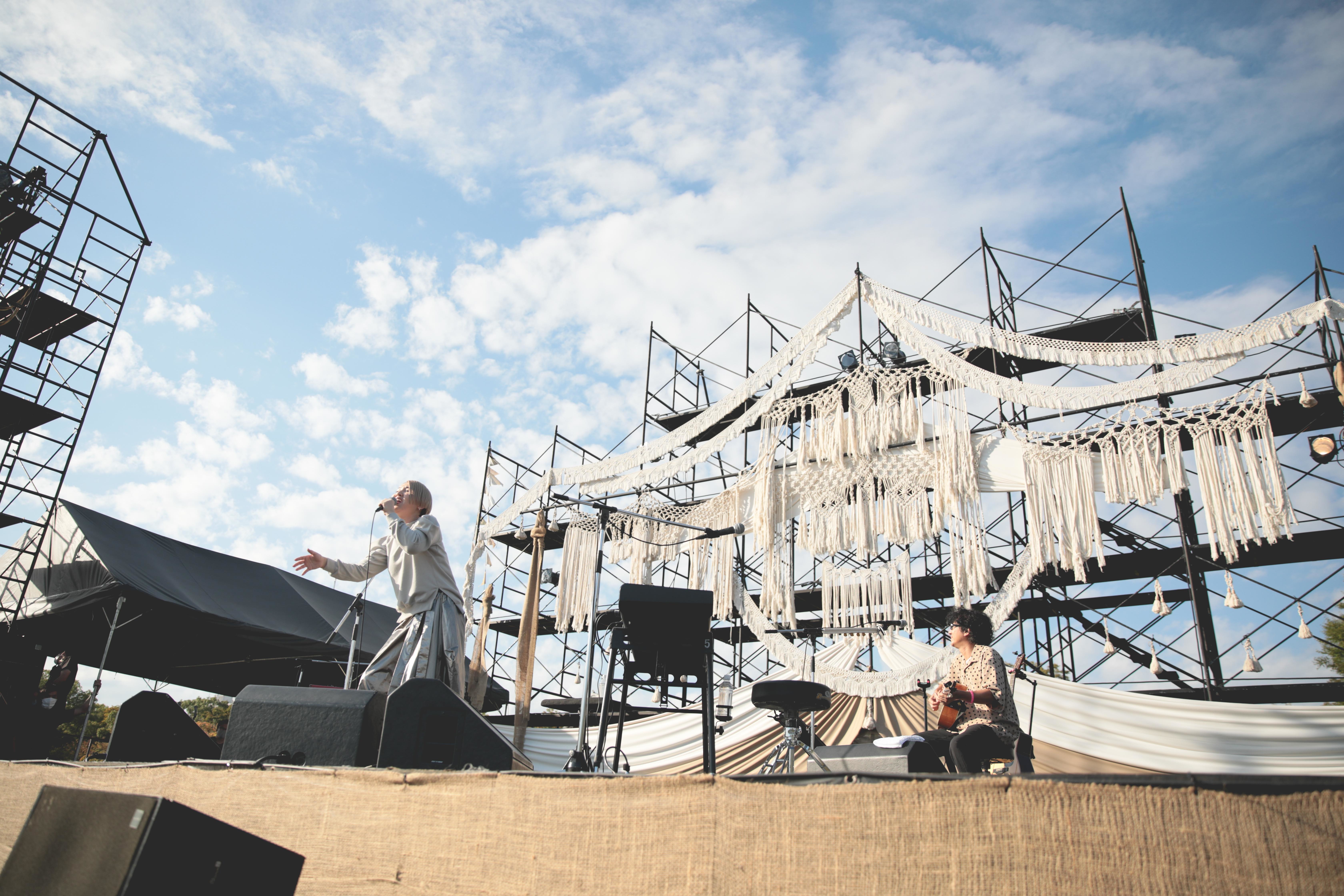 8月にアルバム『Into The Time Hole』をリリースしたばかりの彼ら。「晴れた日に歌いたい」と、「It’s A Sunny Day」へ。最初こそ、客席前方で2人の音を浴びていたけれど、この日の情景をそのまま写したような牧歌的な言葉の数々に心惹かれて、後方のよりゆったりとしたエリアに移動してみる。芝生の上に直に座って、ぼ~っと彼らの音にまどろんでいるのも最高に気持ちが良かった。