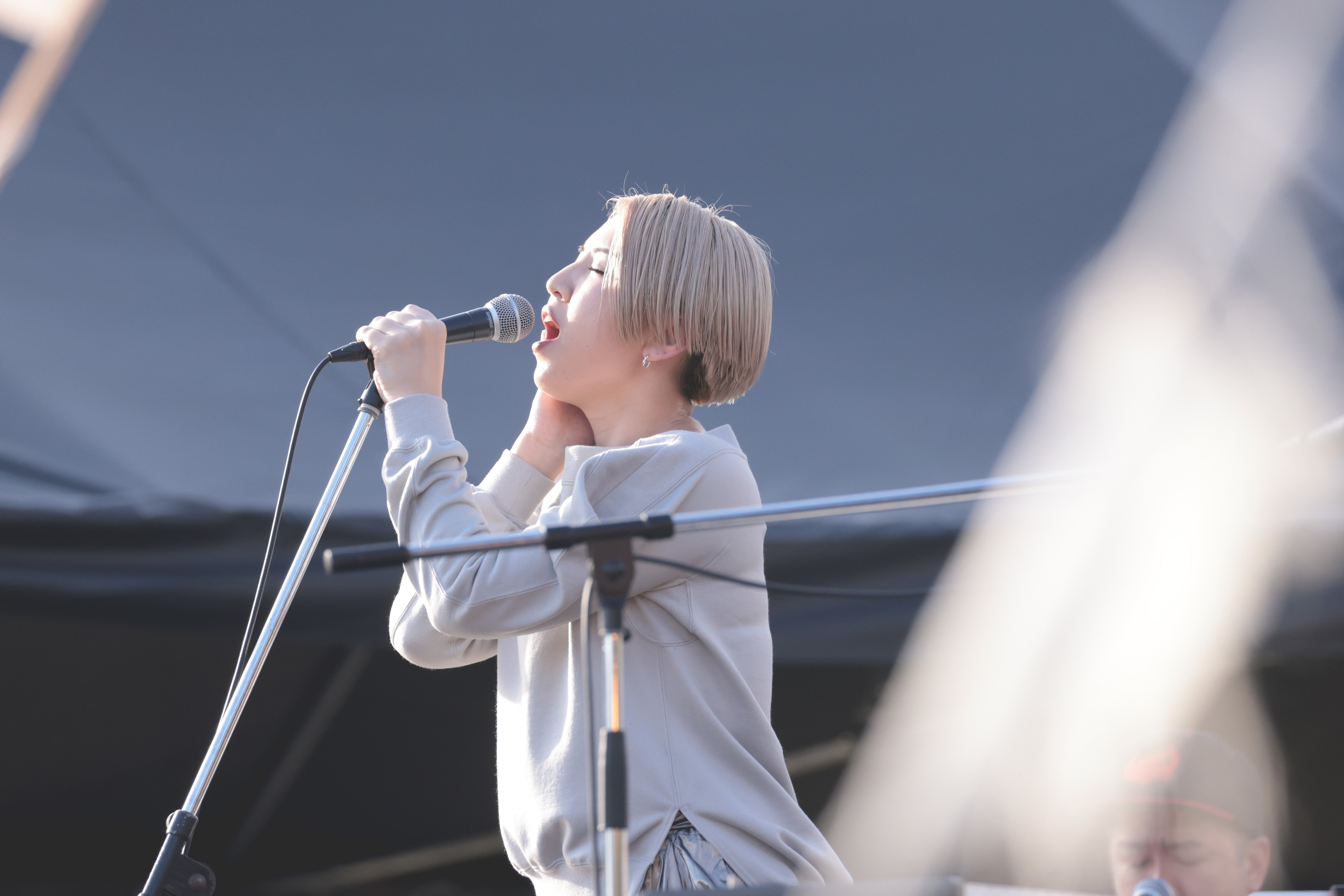 心地よく耳をくすぐる柔いメロディに体を揺らし、シートに寝っ転がったり、手拍子をしたりと思い思いのスタイルでライブを楽しむ観客たち。続く「Wave」では、程よく脱力感のあるサーフミュージックに気持ちがほぐれていく。「気持ちいい」に特化し、ジャンルの壁をさらりと超えた音楽の数々に引きこまれ、全4曲のステージはあっという間に終わりを迎えた。