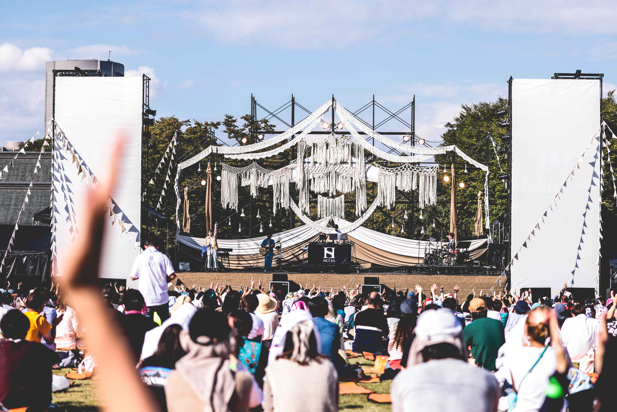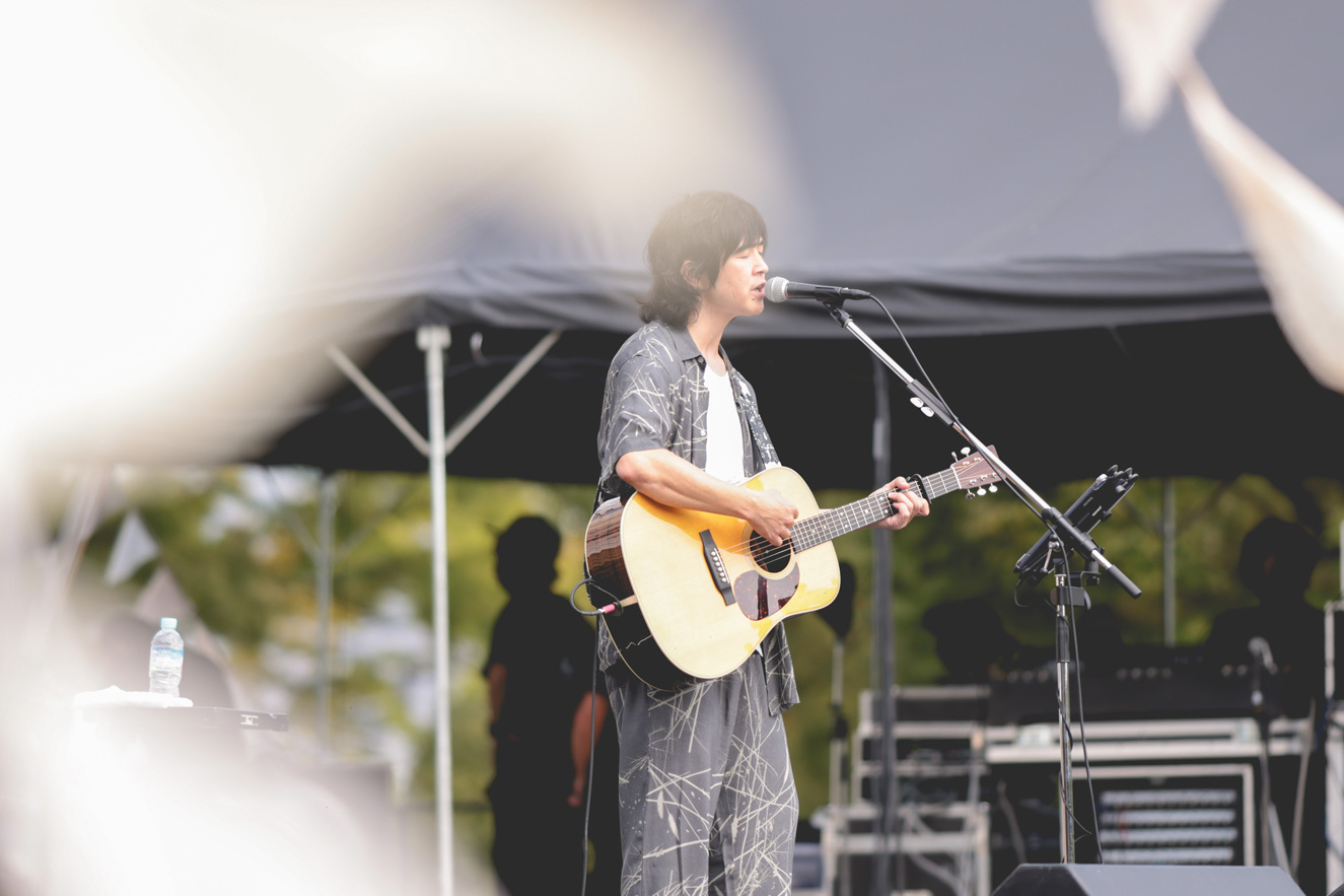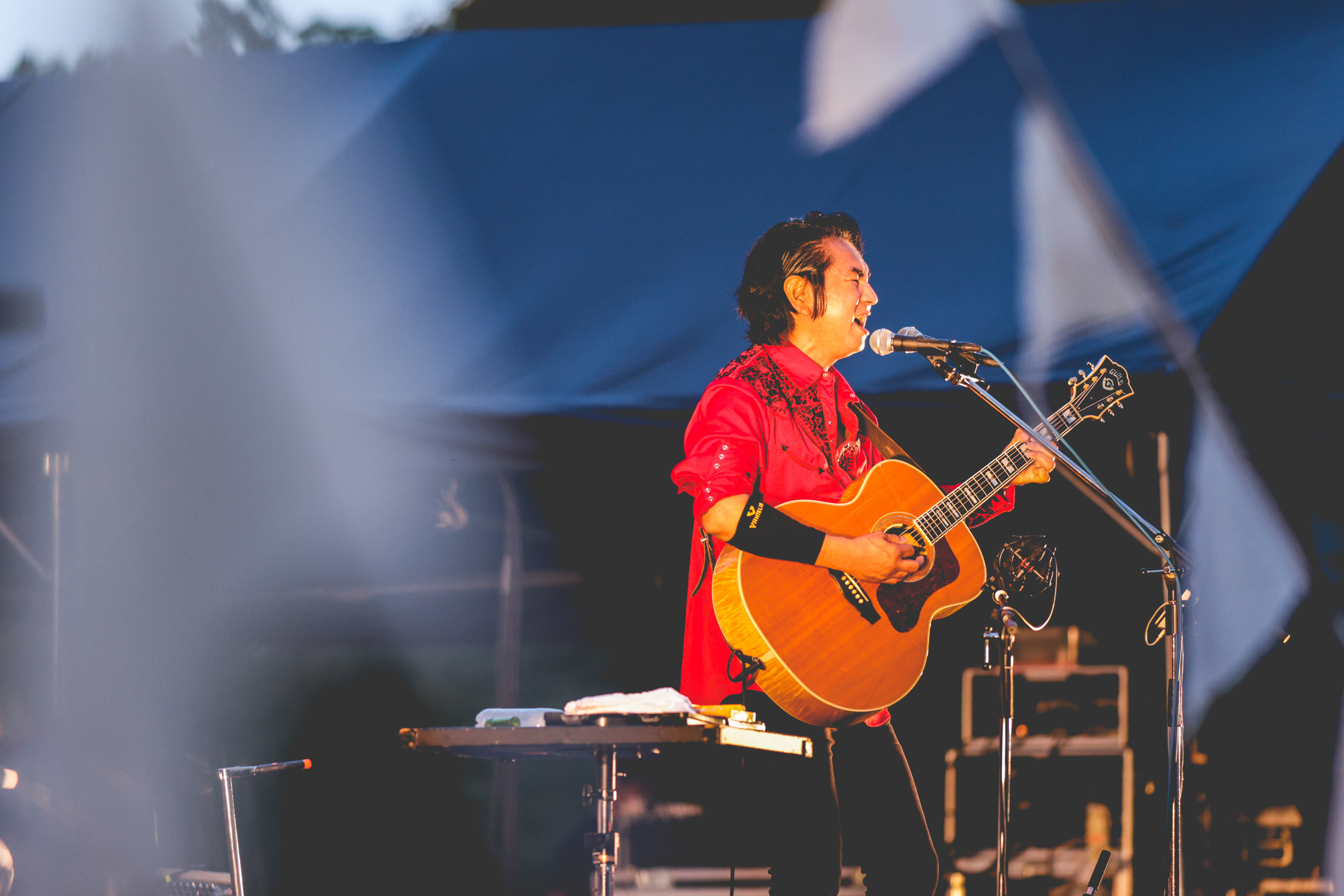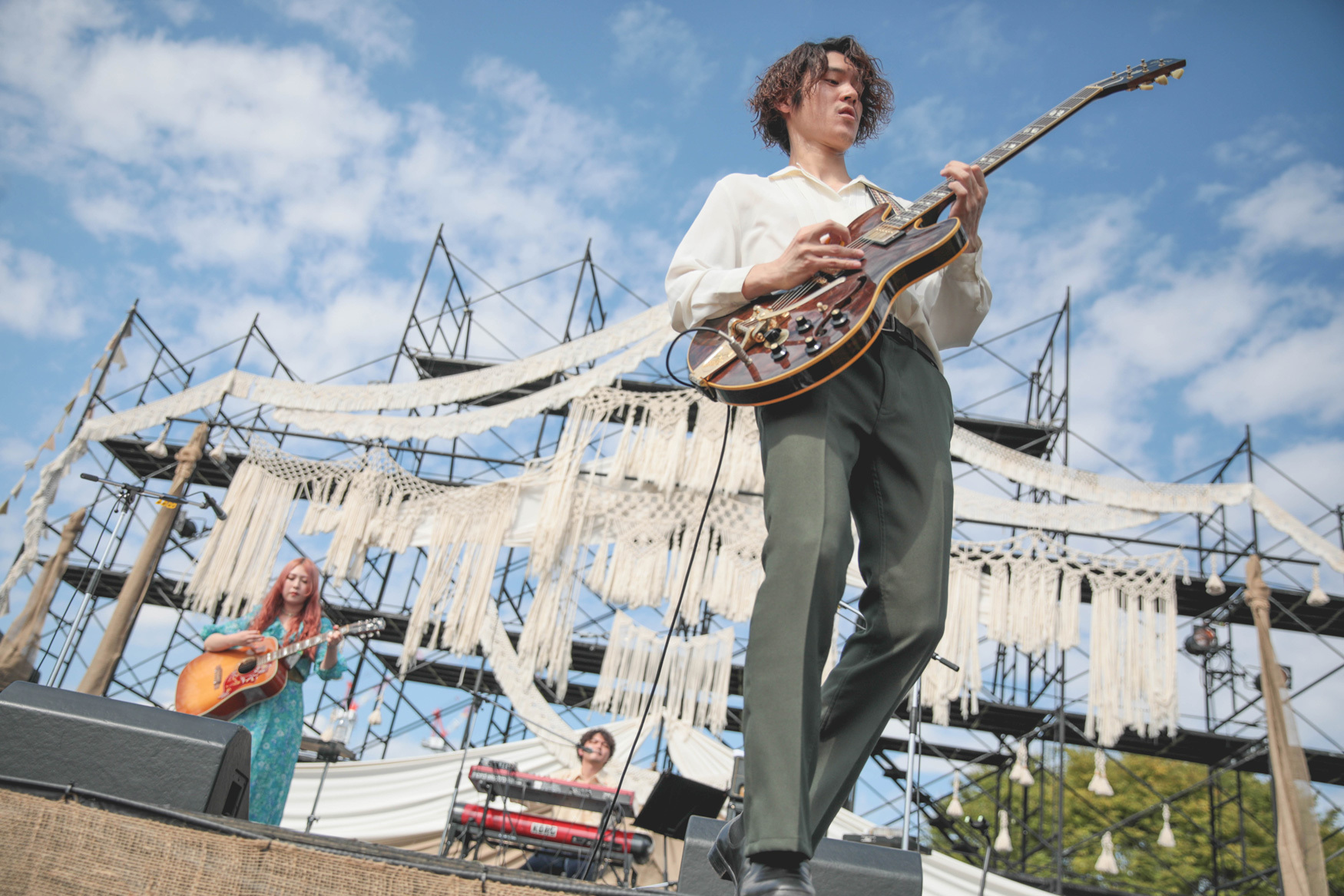 「座ってじっとしてる音じゃない! 体を動かして、バンドがいる幻影を見て!」と観客を煽り、「フィエスタ」へ。血が滾るようなソウルフルで多幸感に満ちた楽曲は祭りで賑わった1日を締めるのにぴったりな選曲だ。極上の音で満たされる喜びに浸っていると、ステージはあっという間に最終曲「希望のバネ」に。高まる情熱を音にぶつけ、アグレッシブにギターをかき鳴らし続ける彼。ジャズにソウルにブルースに、幅広い音楽性を以て、観客を自らの世界に引きこんだライブが終わると、心地よい高揚感が全身を纏っていた。