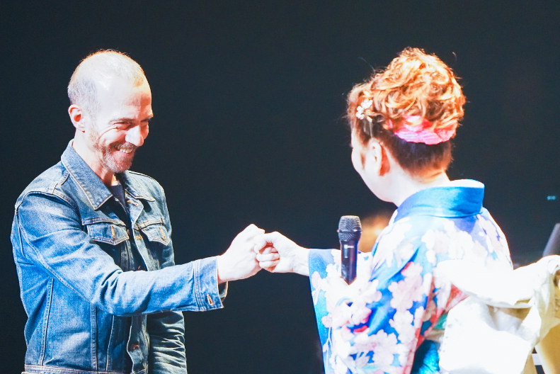 続けて「なみだ恋」「愛の終着駅」「おんな港町」「もう一度逢いたい」と自身のヒット曲を披露。八代演歌を耳にしたフランス在住の日本人観客は、涙を流していた。1部の最後には、フランスのロックスター・カロジェロ(Calogero)をゲストに迎え、彼のヒット曲「Le portrait」を日仏それぞれの言語で歌い分けて歌唱するコラボレーションも。音楽で日仏文化交流の大きな架け橋となった。