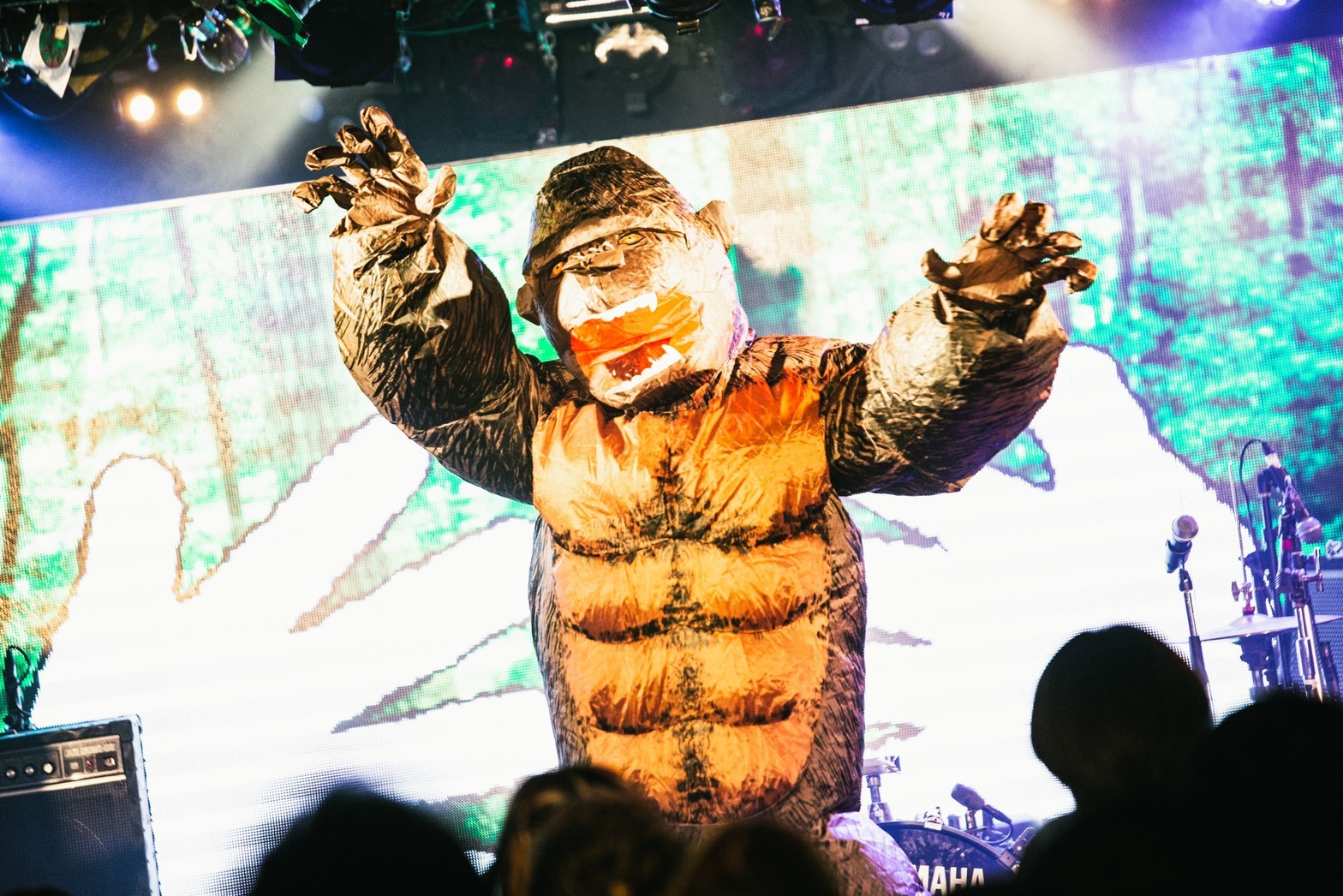おーちくん(Vo)が巨大ゴリラの着ぐるみで現れた冒頭「ゴリラのドラミングーチョキパー」から“ウッ! ホッ! ウッ! ホッ!”のリズムでオーディエンスを惹き込み、推し活に余念がないオタク共感しまくりの「尊み秀吉天下統一」で熱いヘドバンを誘ったりと、やっさん(Gt)とけつぷり(Gt)のキャッチーなギタープレイや映像演出も駆使しながら、瞬く間にHOLIDAY SHINJUKUを自分たちの空気にしてみせた超能力戦士ドリアン。